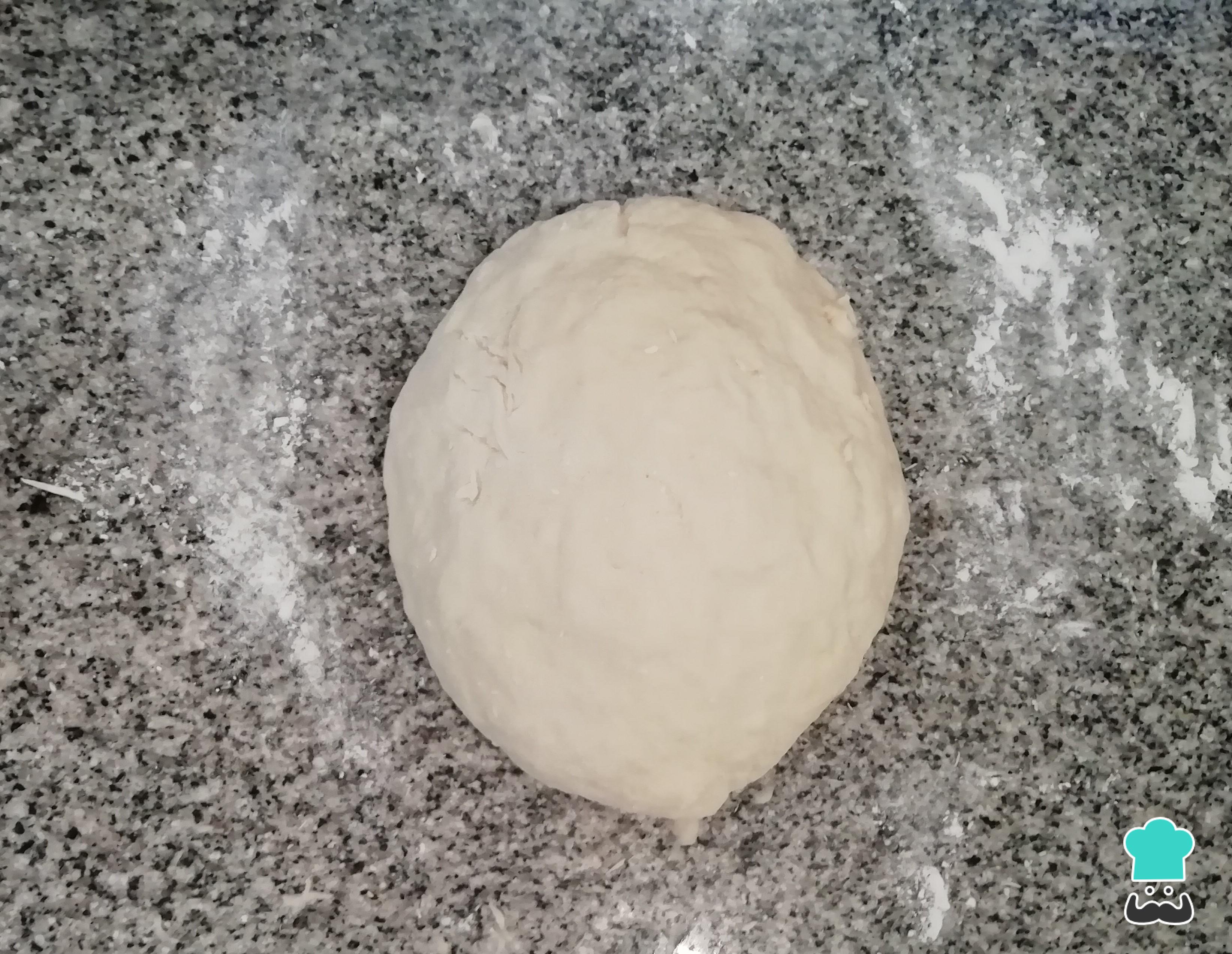Colocamos en la mesada un poco de harina, ponemos sobre ella nuestra masa para sorrentinos y amasamos hasta obtener un bollo que no se nos pegue en las manos.