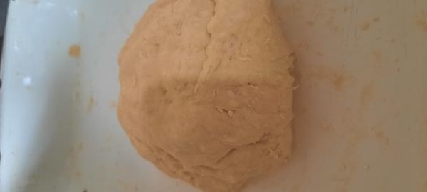 Amasary agregar agua tibia poco a poco a la mezcla, hasta formar una masa suave que se despegue fácilmente de los dedos.