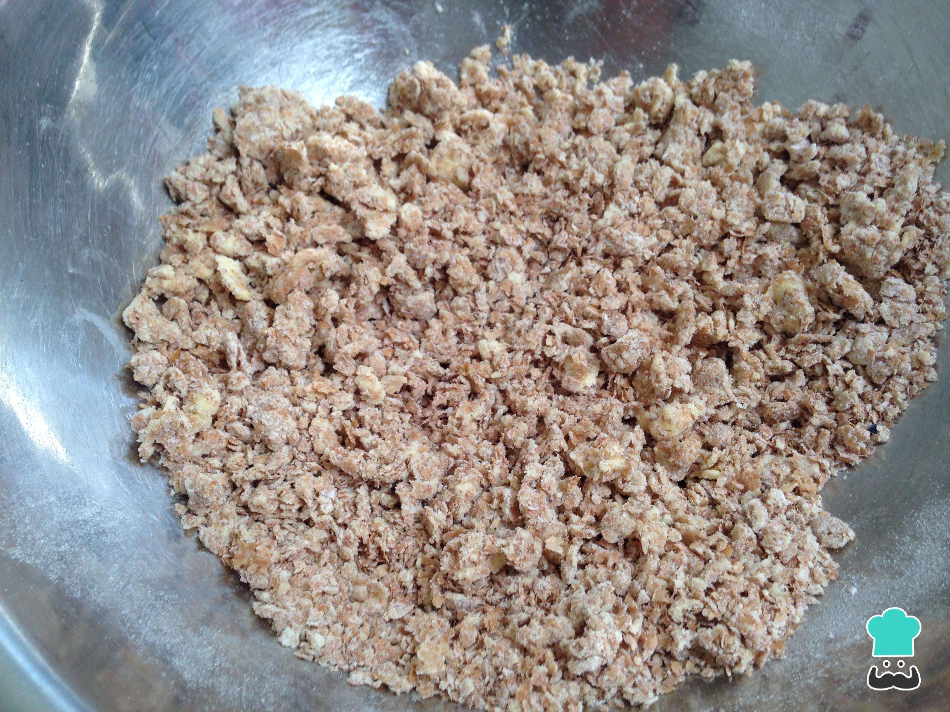 Con las yemas de los dedos vamos a ayudar a integrar la harina con la mantequilla pero sin amasar, el resultado debe ser una arena.