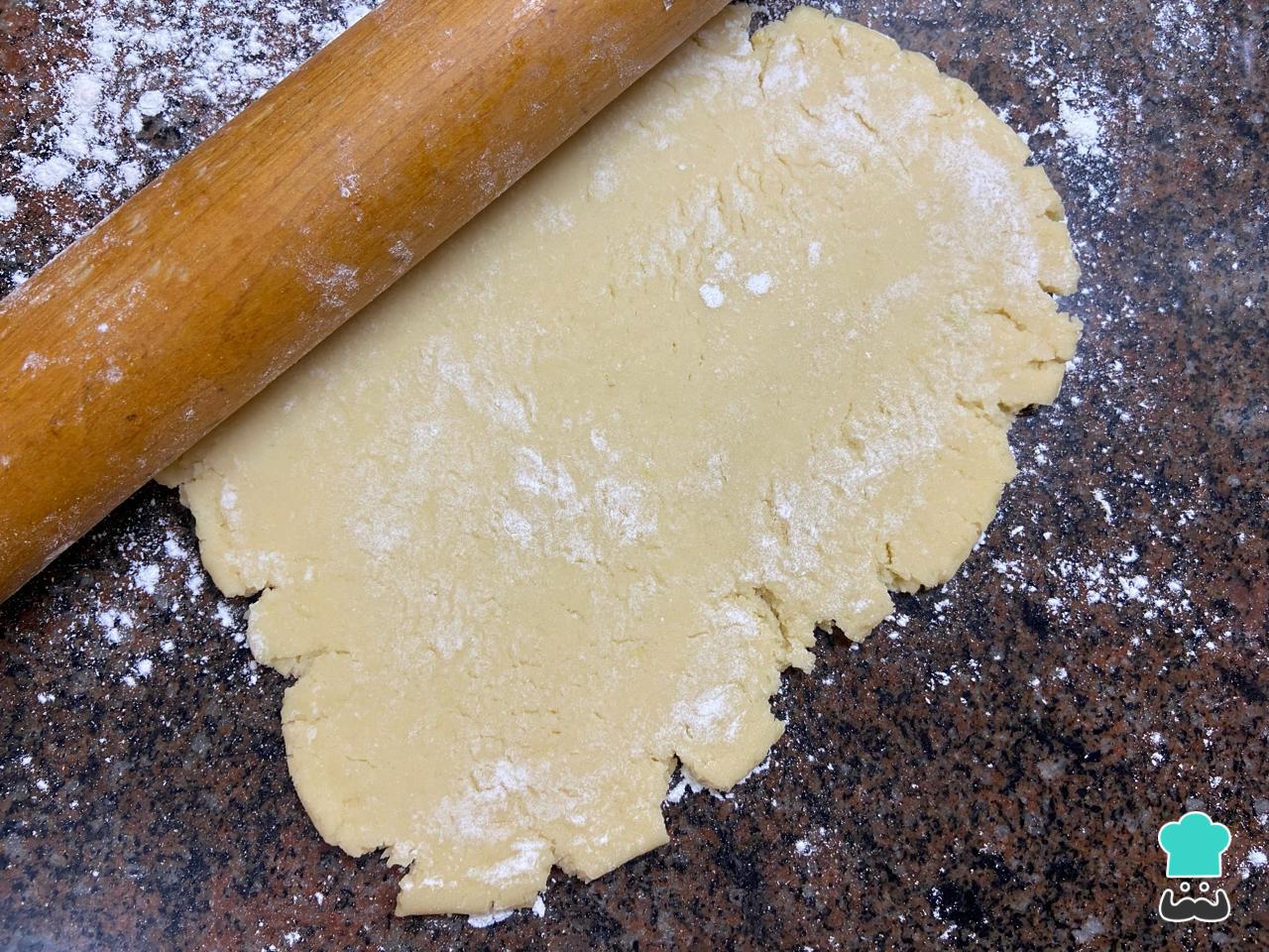 Espolvorea la mesa y el palote con harina y estira la masa de 4 o 5 mm de espesor.
