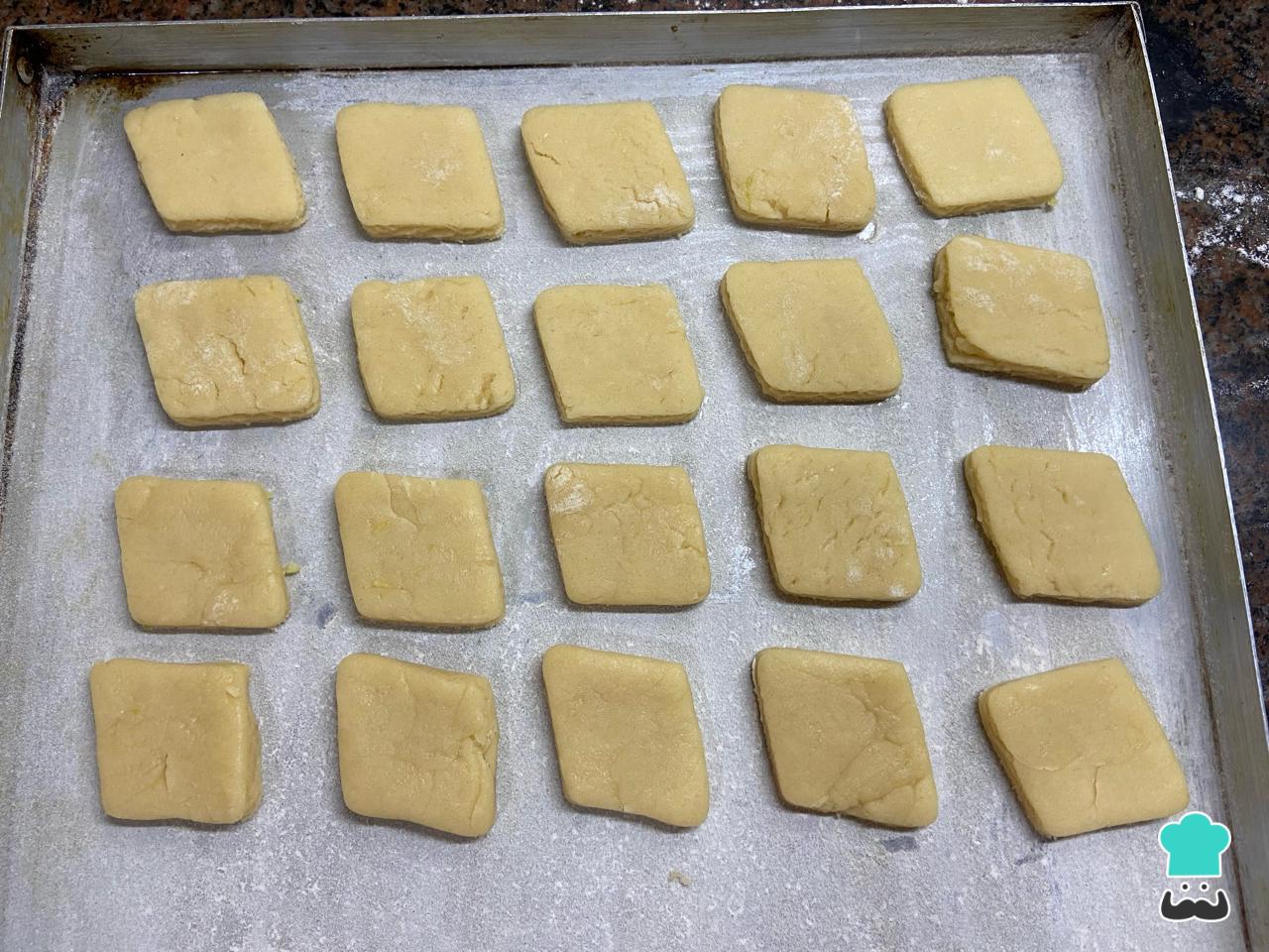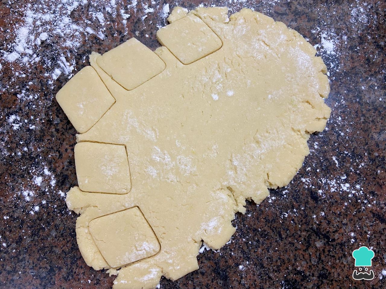 Corta las masitas con el cortante de la forma que más te guste y une los restos para seguir cortando más galletitas.