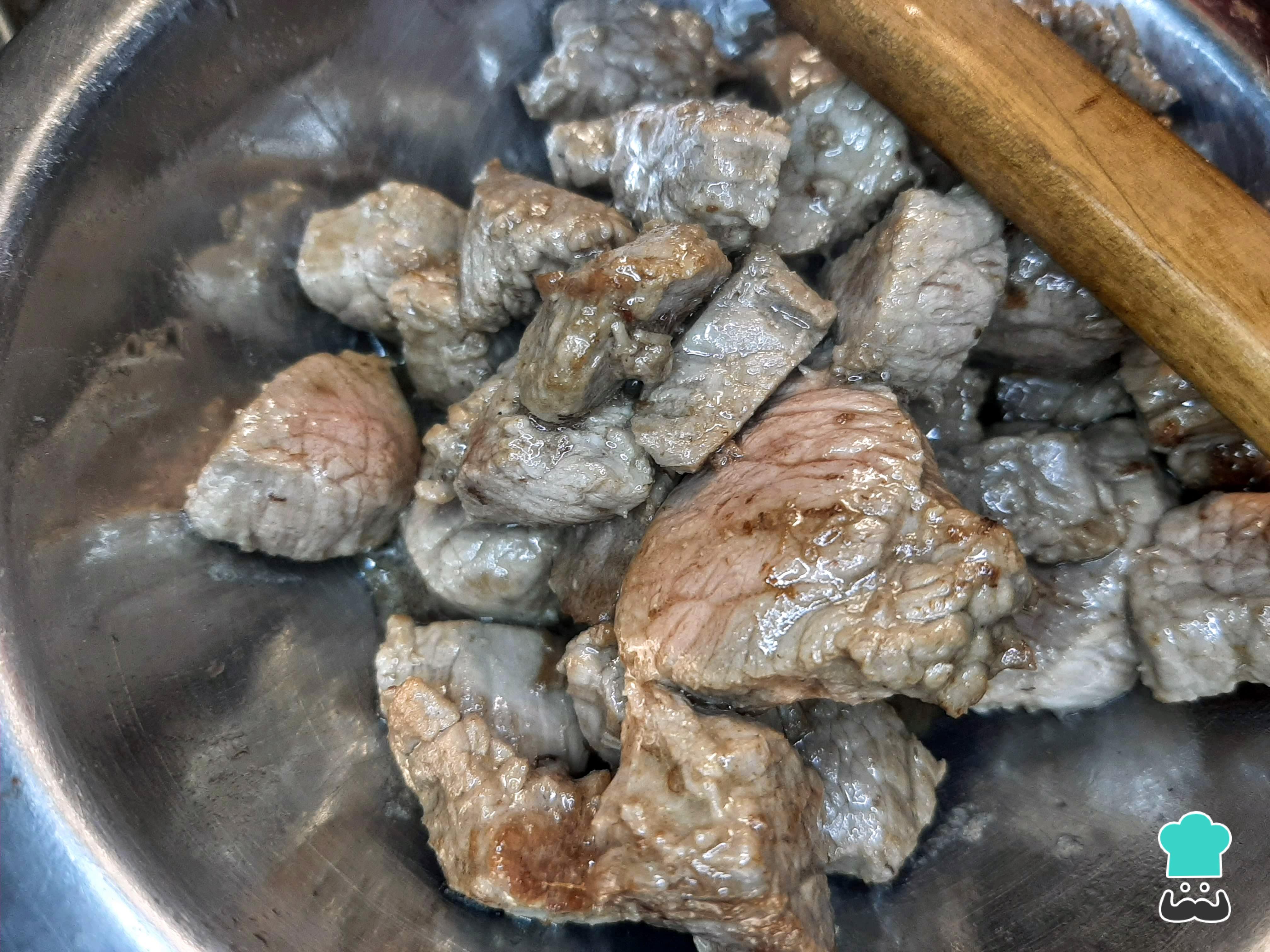 Cuando el aderezo se encuentre listo, añade la carne de res previamente sellada. ¿Qué te está pareciendo esta matasquita peruana?