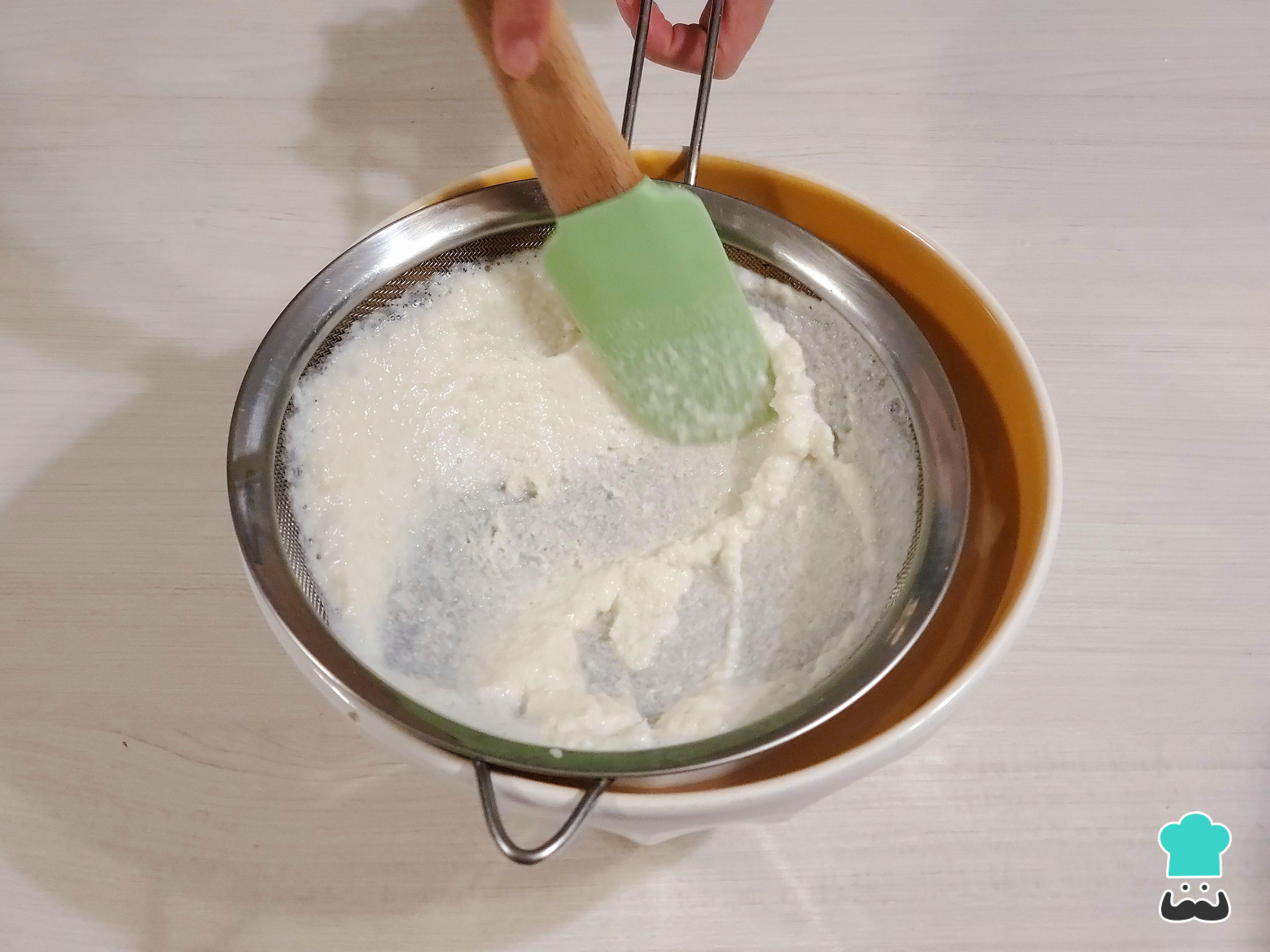 Cuela esta mezcla en un bowl, escurre muy bien la fibra del choclo y, luego, deséchala.