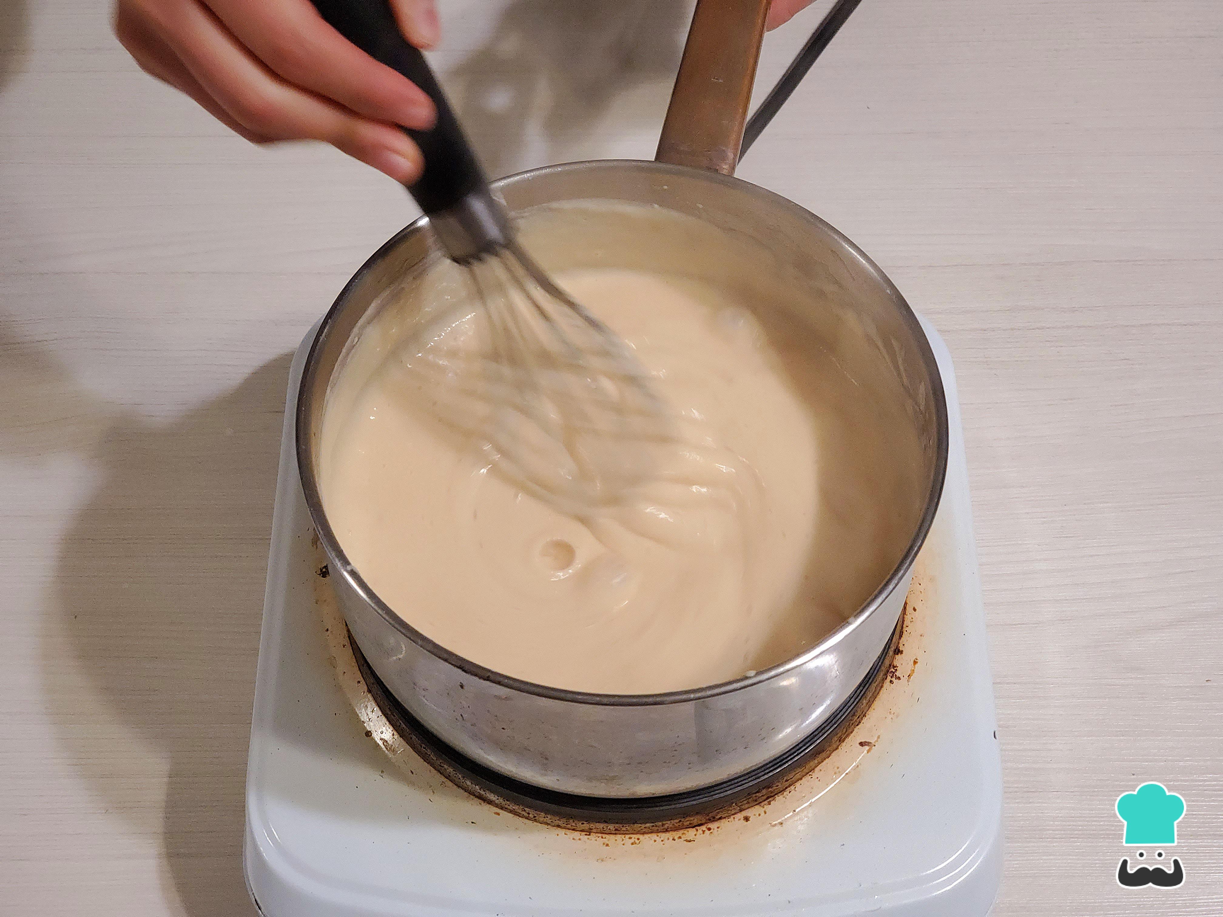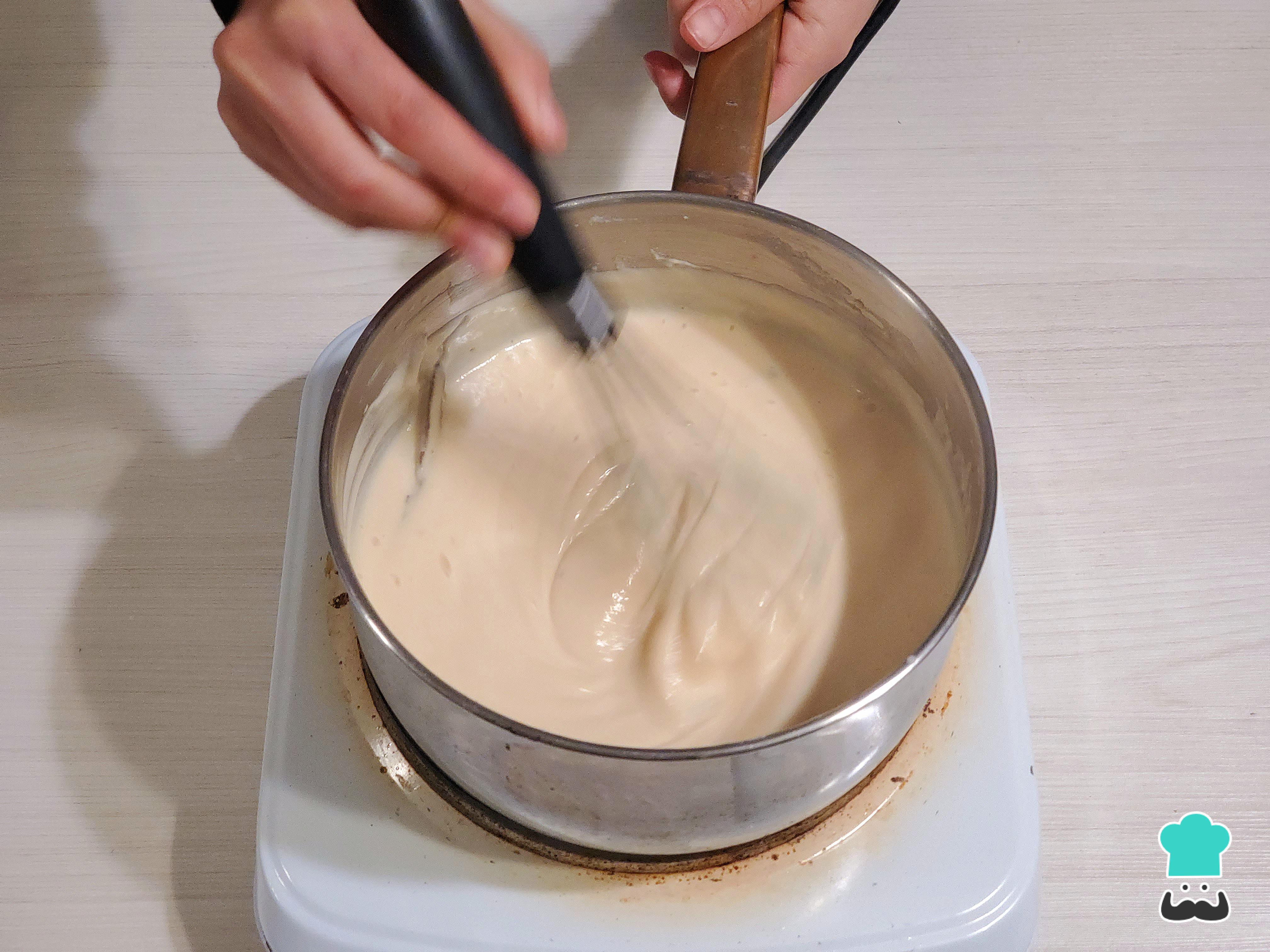 Mantén en el fuego removiendo constantemente hasta que hierva, espese y el almidón del choclo se cocine.