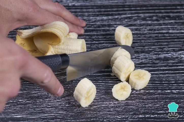 Pelar los plátanos y eliminar las semillas negras. Nosotros hemos optado por hacer mazamorra de plátano maduro, no obstante, también se puede hacer mazamorra de plátano verde siguiendo esta misma receta.