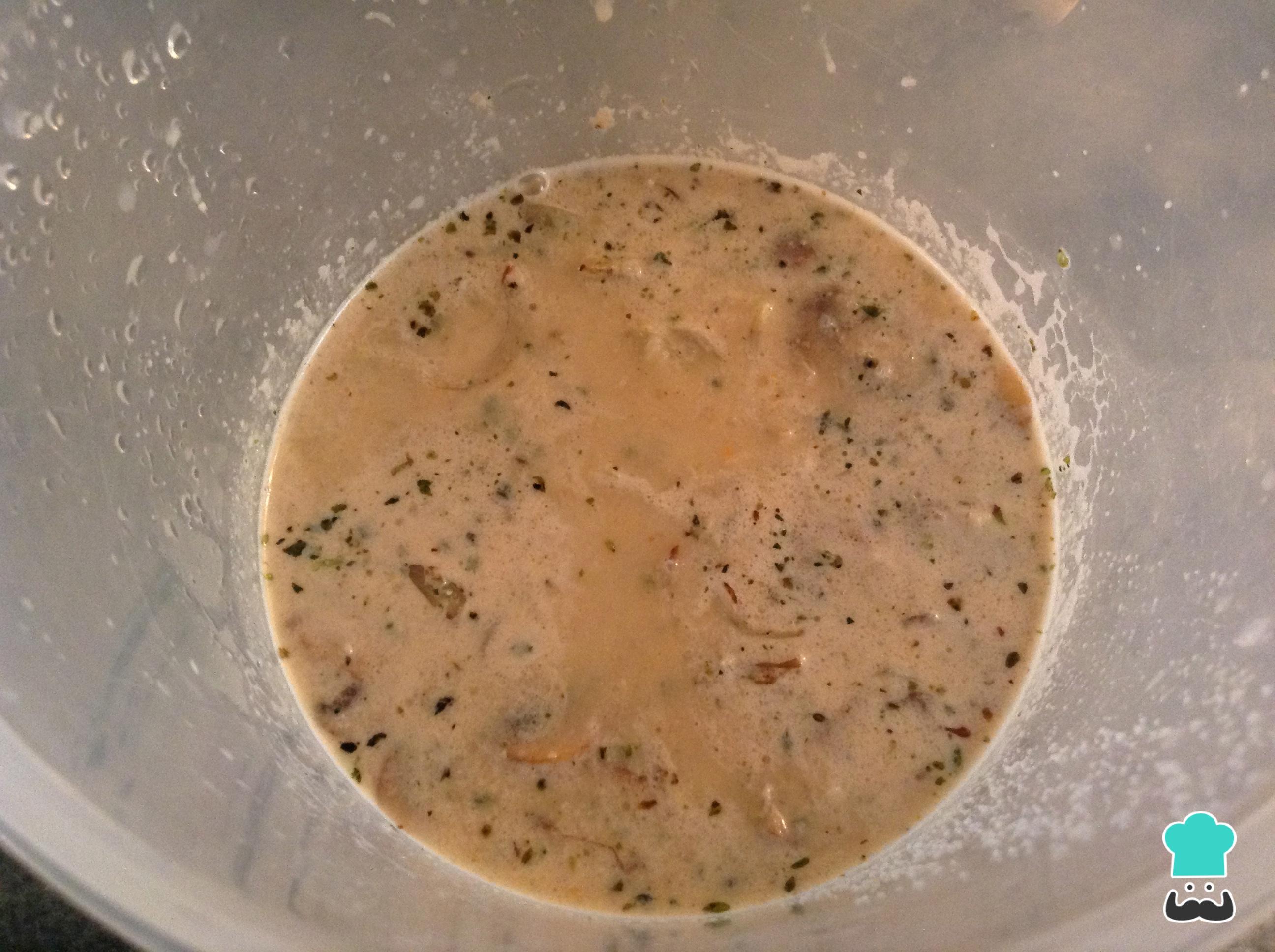 Lleva la salsa de champiñones aun bol y procesala hasta que se integren todos los ingredientes por completo.