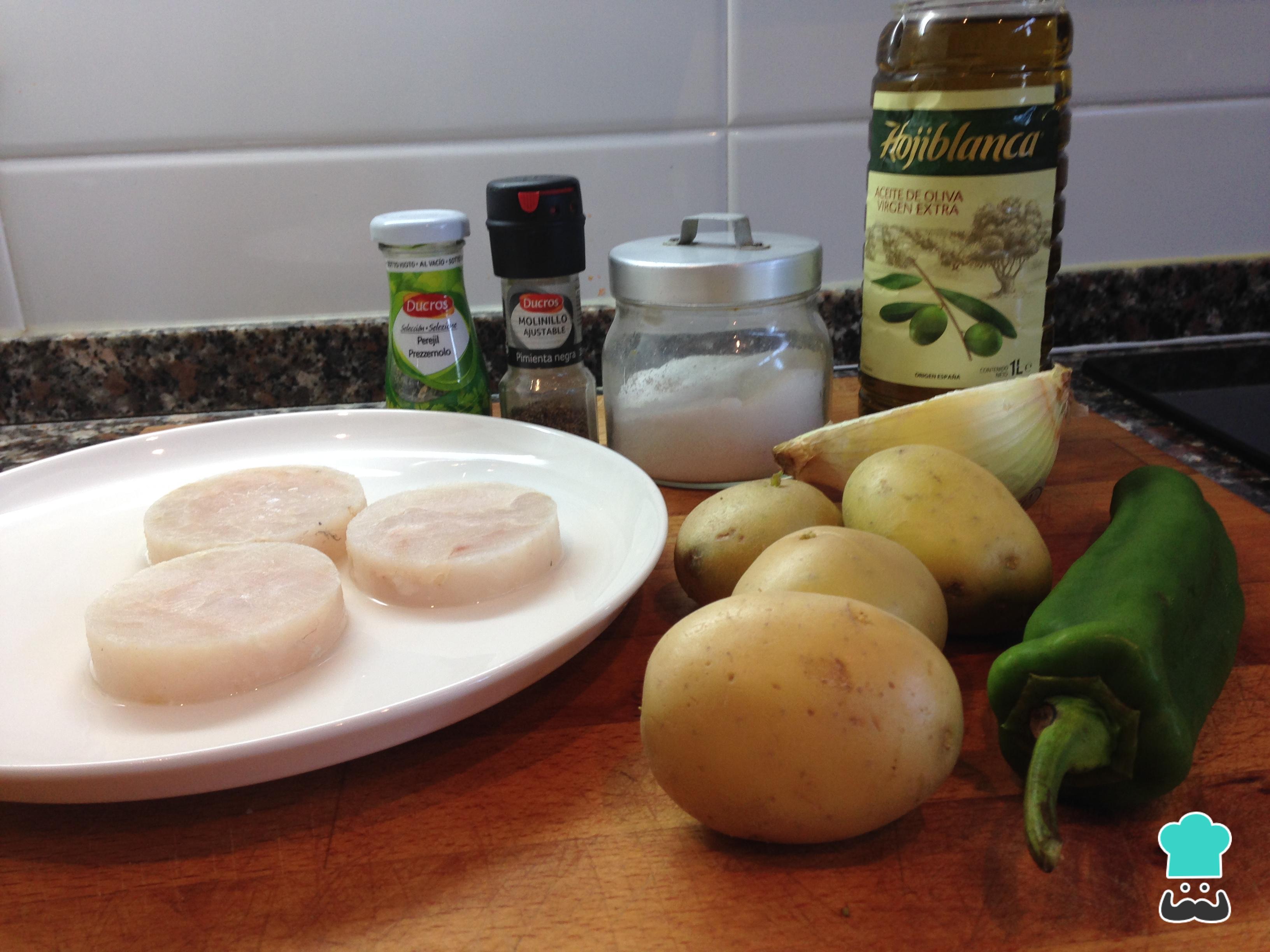 Medallones de merluza (que pueden ser congelados) y patatas son los ingredientes básicos de esta receta de merluza al horno con patatas. Les añadimos cebolla y pimiento verde, así como unas especias para potenciar el sabor del plato.