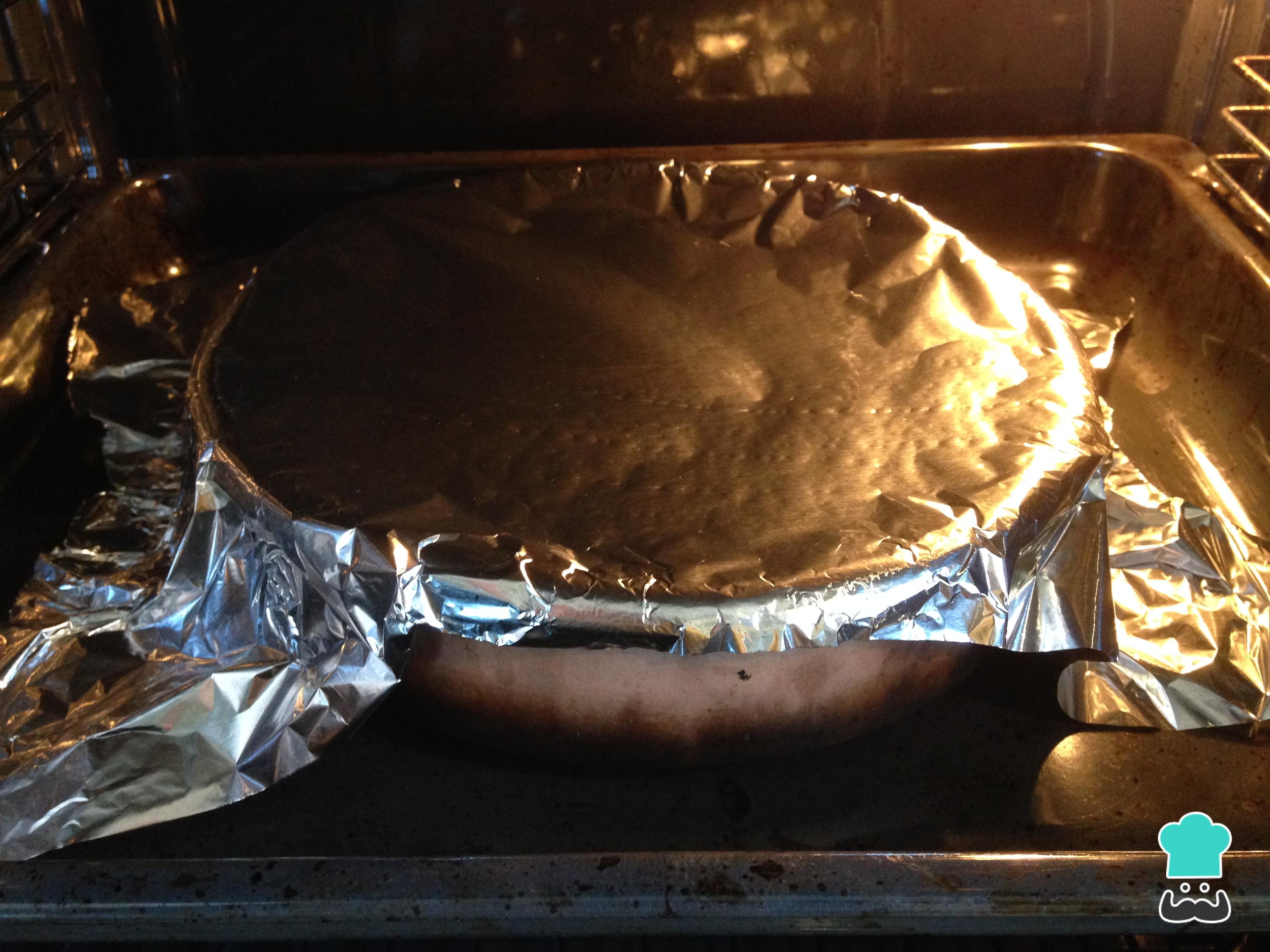 Taparemos la cacerola con papel de aluminio y la introduciremos en el horno, precalentado a 180ºC, durante unos 30 minutos.