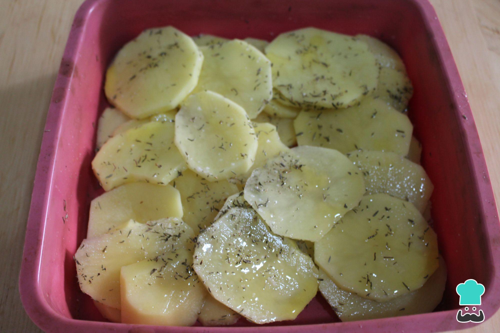 Truco: no dejes las rodajas de patatas gorditas o no se harán en tiempo.
