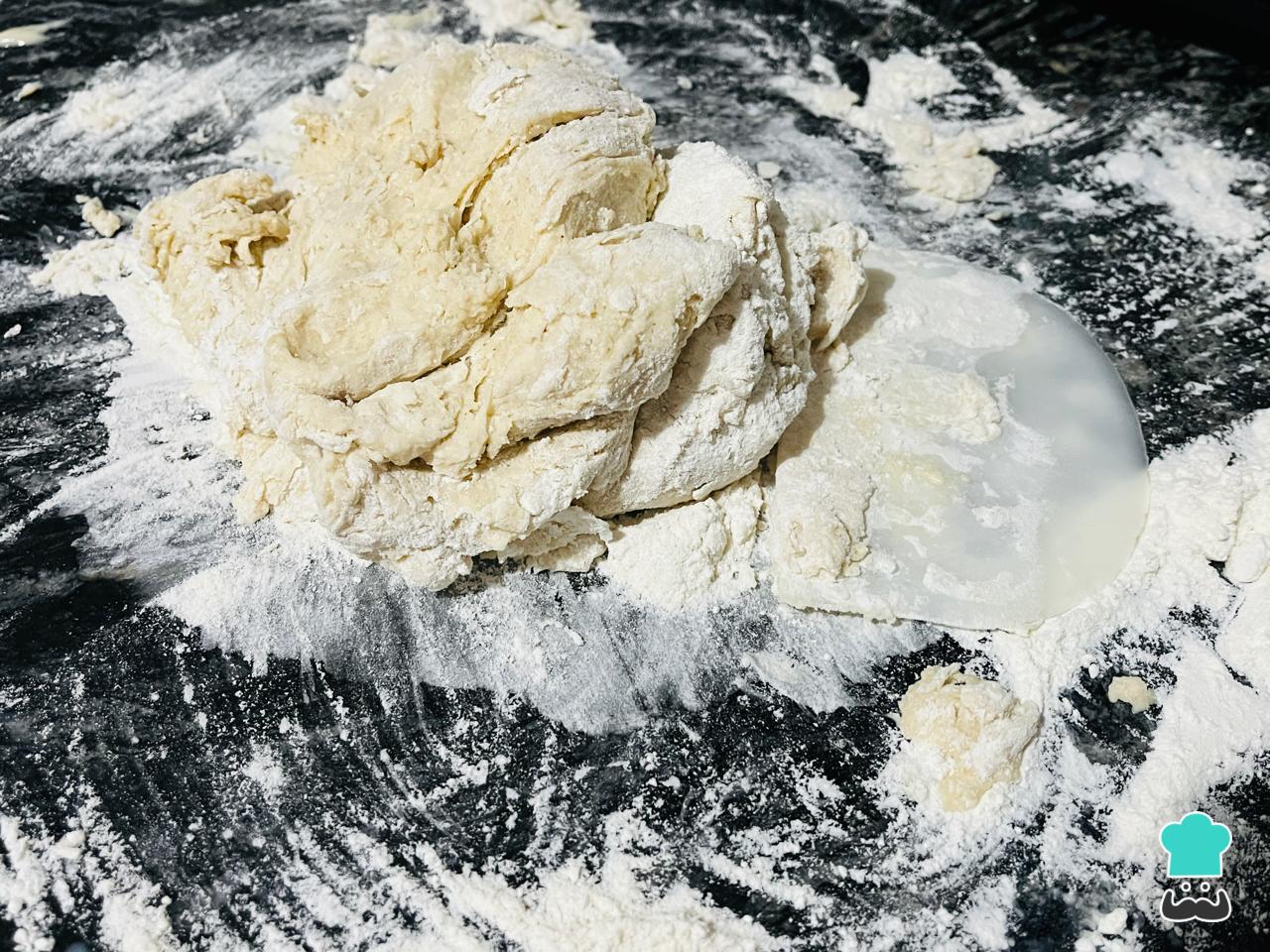 Integra del centro hacia afuera buscando formar una masa. No te asustes si al principio resulta algo húmeda, te asguramos que no será necesario agregar más harina.