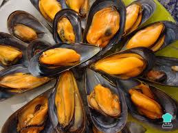 Los mejillones que deberán ser grandes, se cuecen en agua y al abrirse se les quita una concha, dejando sólo la otra.