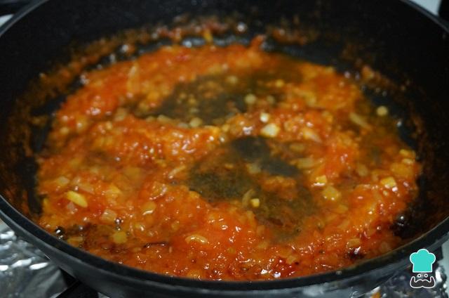 Dejamos cocinar la salsa para mejillones fácil hasta que todo quede bien pochadito.