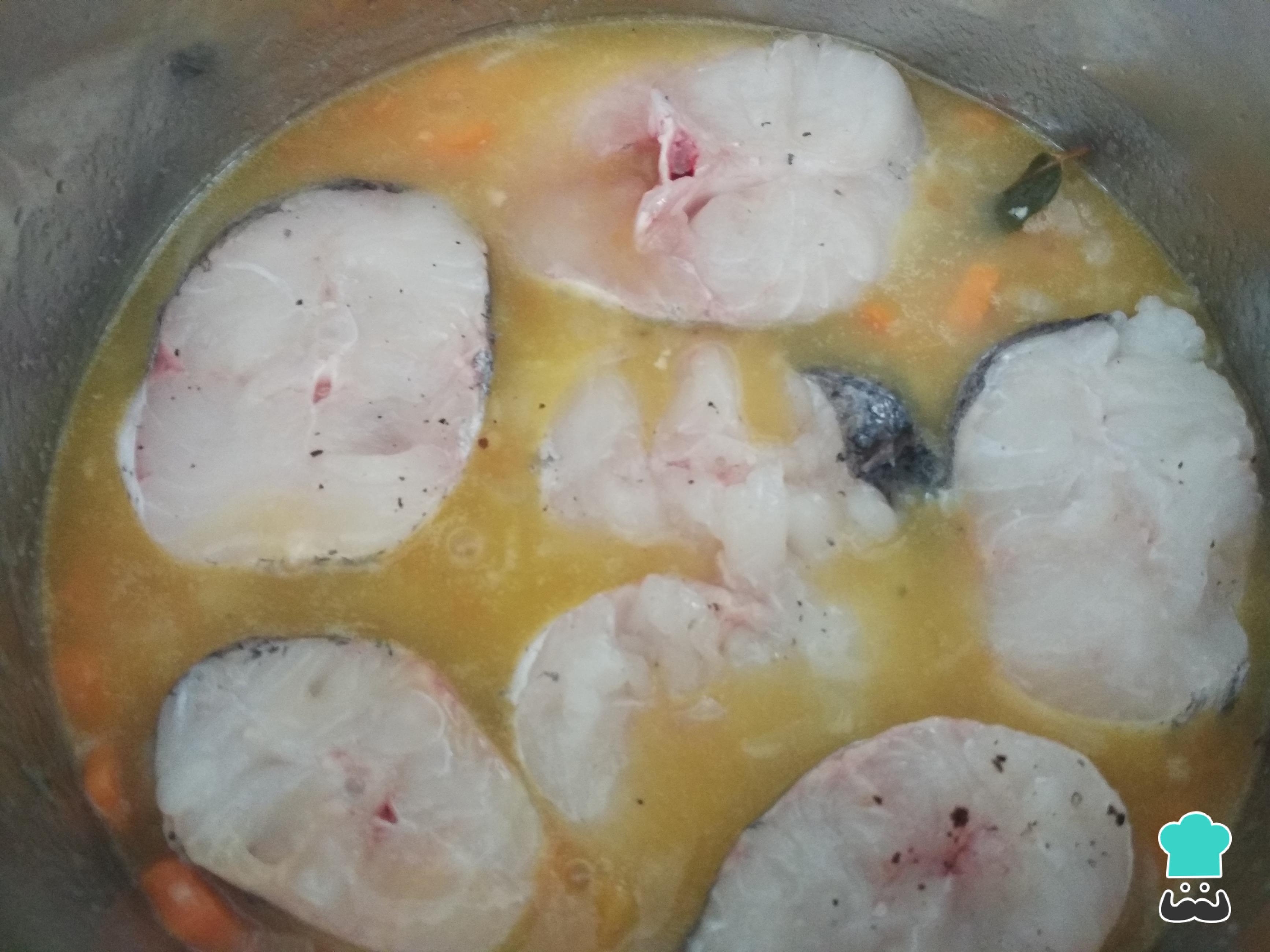 Por último, añadimos el pescado salpimentado y dejamos que se cocine por ambos lados para continuar con la receta de merluza en salsa. El tiempo de cocción es de unos 3 minutos por lado, dependiendo del grosor de las rodajas.