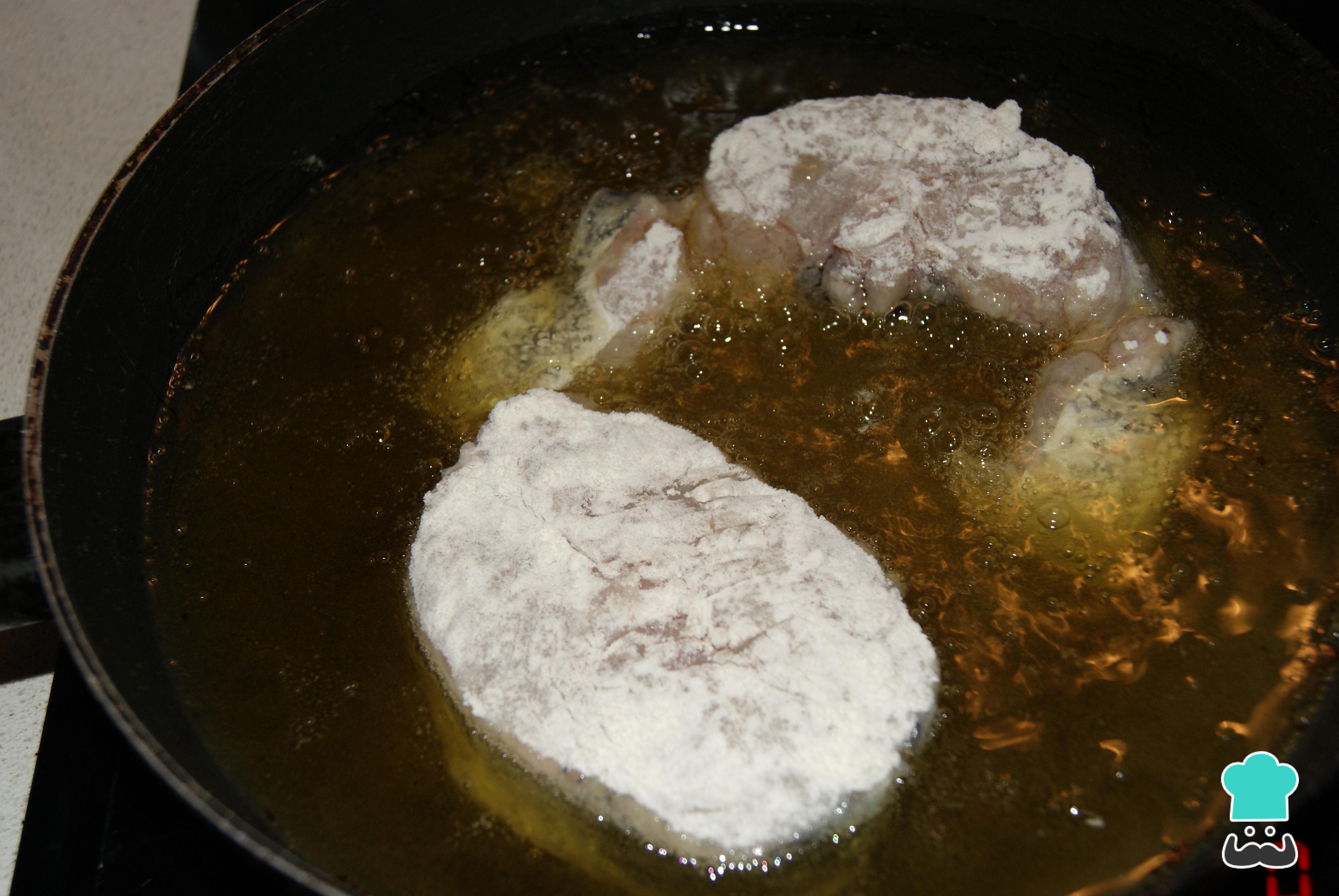 Aparte, salamos las merluza y la rebozamos con la harina. Así nuestra merluza con almejas en salsa verde estará más sabrosa.