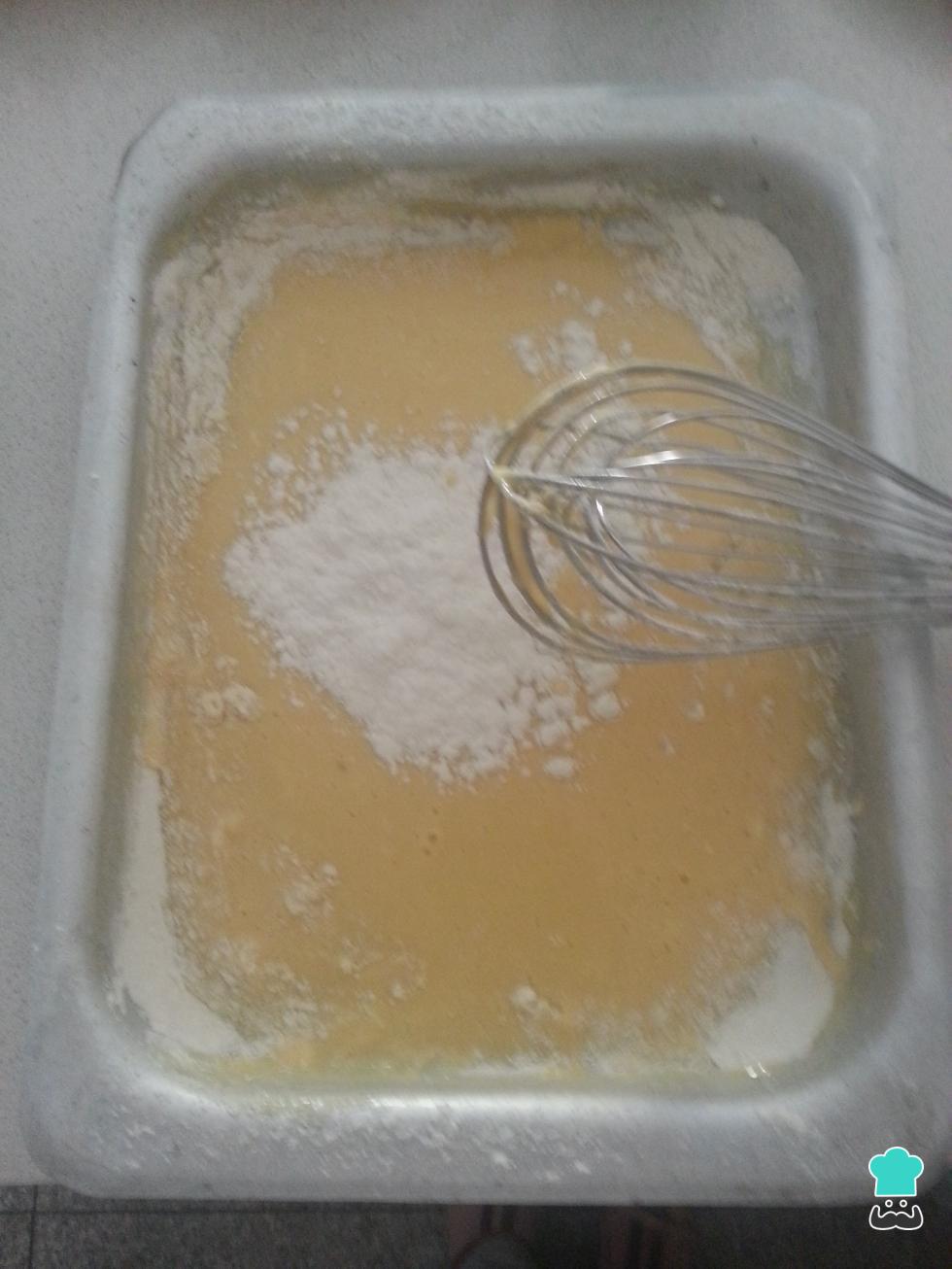 En una bandeja ponemos los huevos batidos y le agregamos la harina removiéndola.