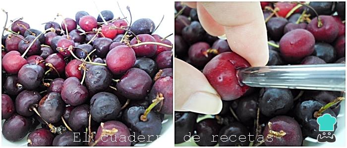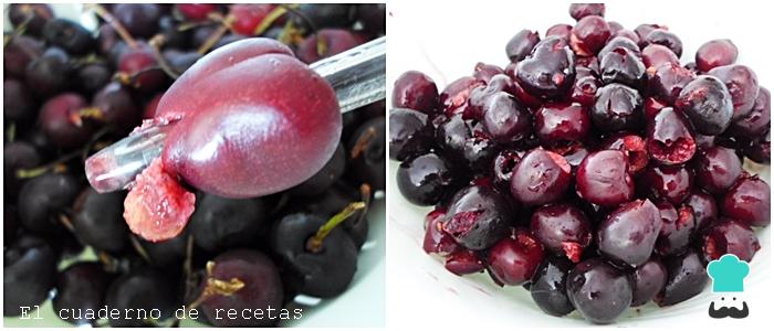 Cuando hayamos deshuesado todas las cerezas las reservamos para utilizarlas después.