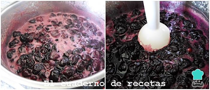 Truco: Si quieres que la mermelada de cerezas casera te quede grueso tritúrala menos o guárdate unas cuantas cerezas enteras antes si te gusta encontrarte los tropezones de fruta para añadirlos al final.