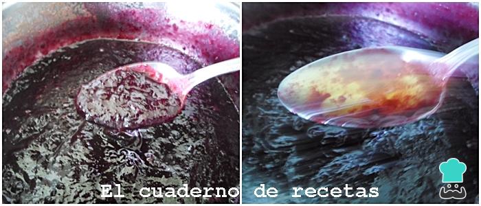 Para comprobar si la mermelada de cerezas sin azúcar está bien hecha, ponemos una cucharadita en un plato y con el dedo trazamos una raya en medio. Si el camino hecho no se cierra es que la mermelada casera está en su punto.