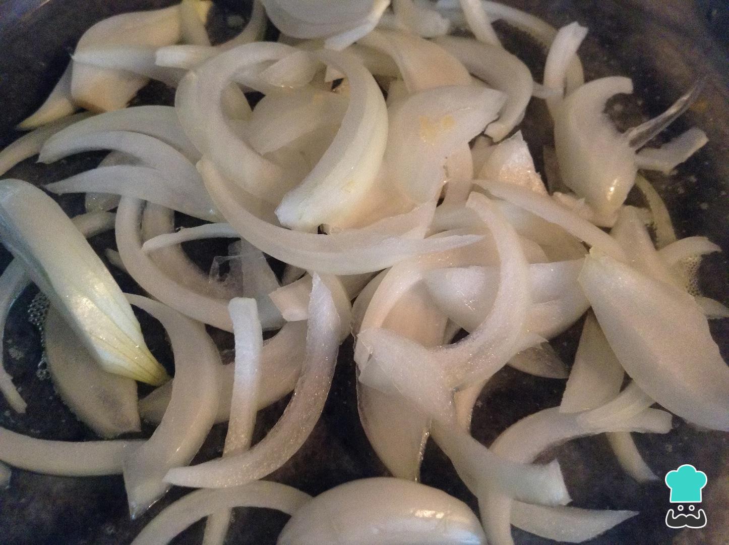 Corta en plumas la cebolla blanca y colócala en una refractaria previamente engrasada.
