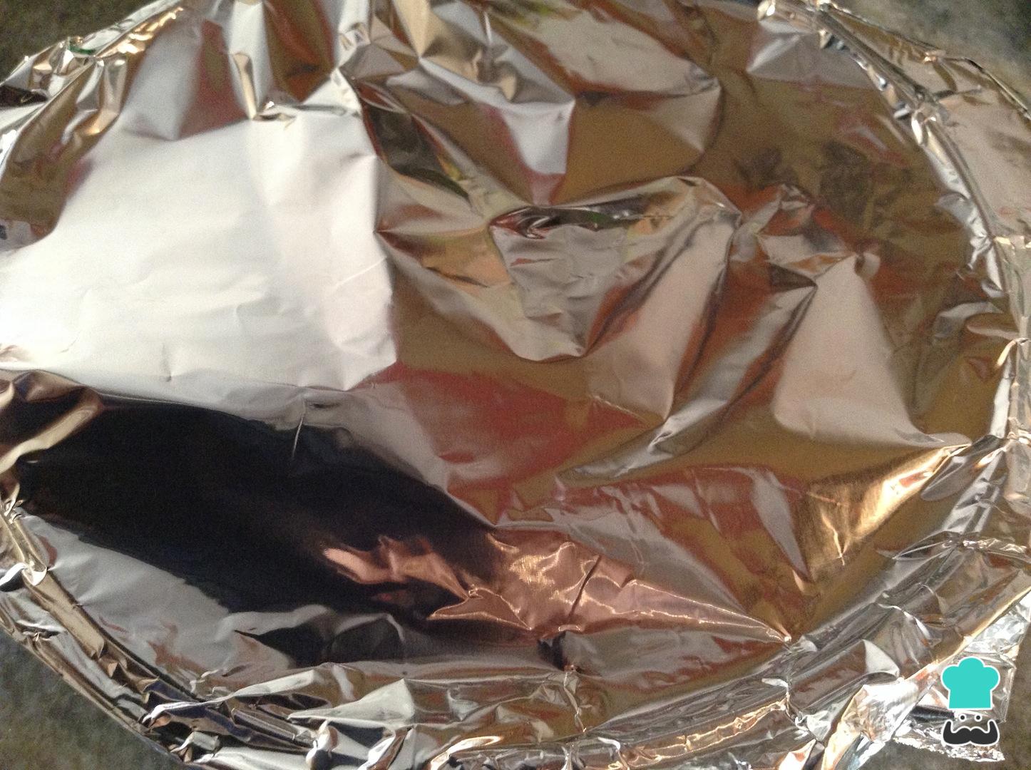 Cubre con papel de aluminio y lleva las patatas panaderas al horno durante 45 minutos a 180ºC. Retira el papel aluminio y deja dorar las patatas durante 10-15 minutos más.