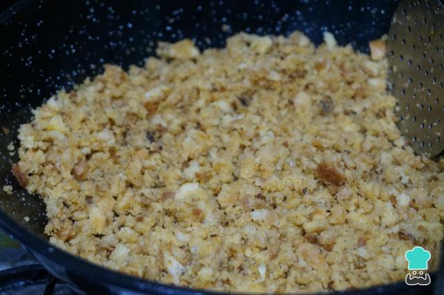 Verás que se irán soltando las migas y quedarán algunas un poco crujientes por fuera y tiernas por dentro. Para que te queden sueltas, tienes que darles la vuelta todo el rato durante los 30 minutos de cocción. Si se pegan en la base no pasa nada, ve despegándolas, pero no añadas más aceite para que el pan no lo absorba y quede muy aceitoso.
