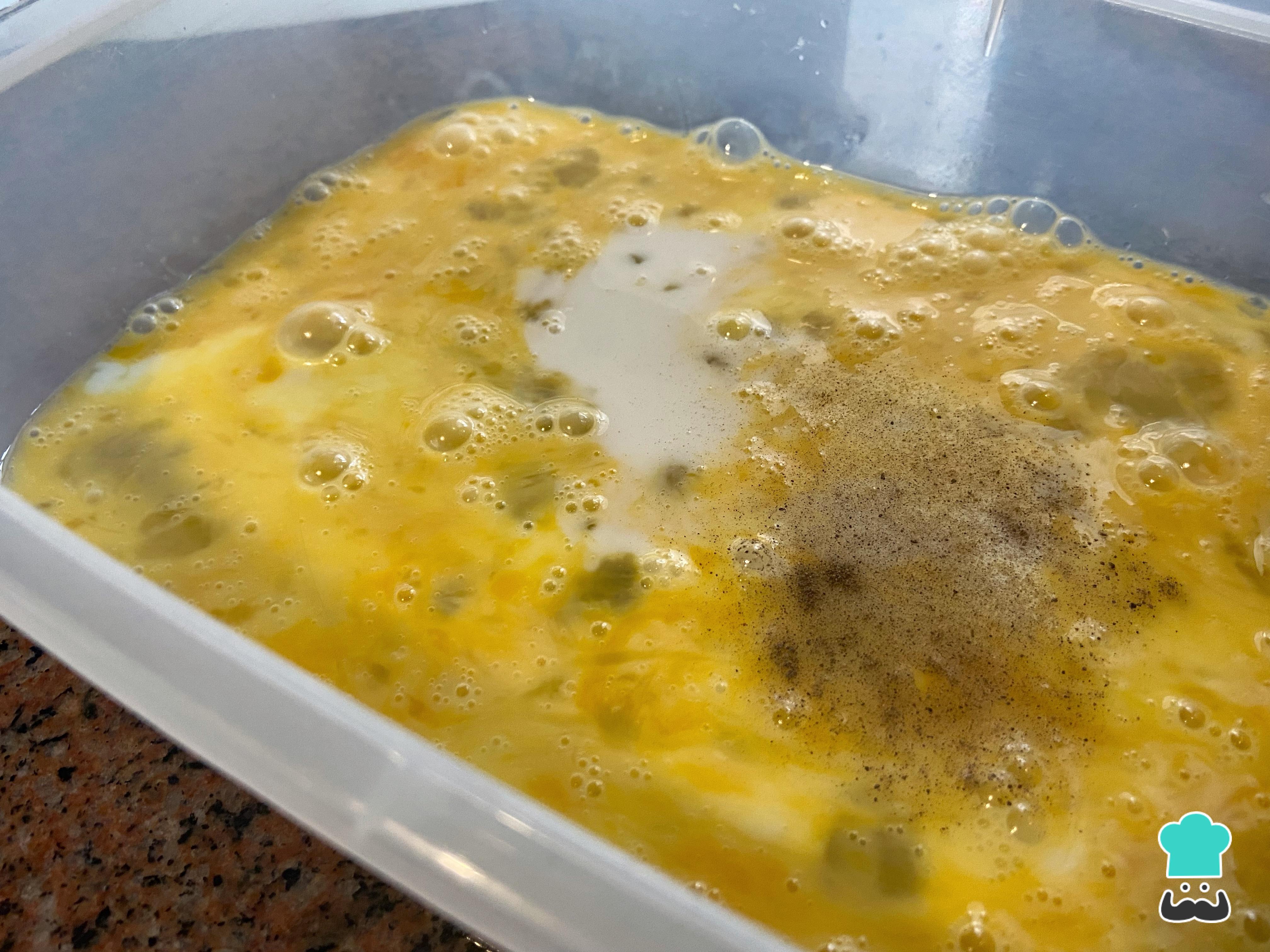 ¿Te preguntas cómo cocinar una milanesa al horno? Pues bien, para empezar con la receta de milanesa de cerdo al horno, primero debes mezclar el huevo con la leche y la pimienta. No recomendamos agregar en este punto la sal, ya que hará que la milanesa libere algo de líquido durante la cocción, haciendo que se despegue del pan rallado. Sin embargo, puedes agregar otros condimentos, como provenzal.