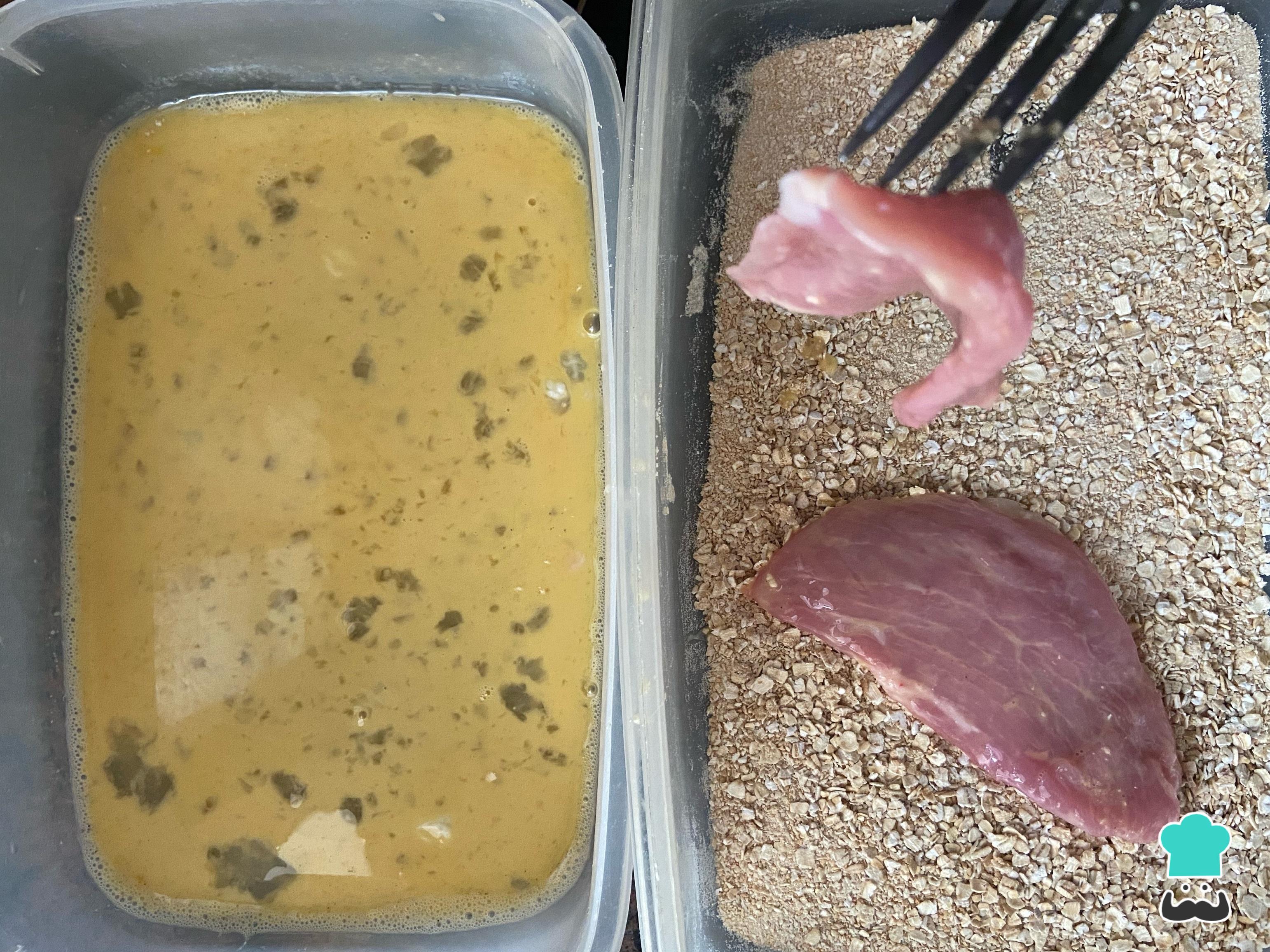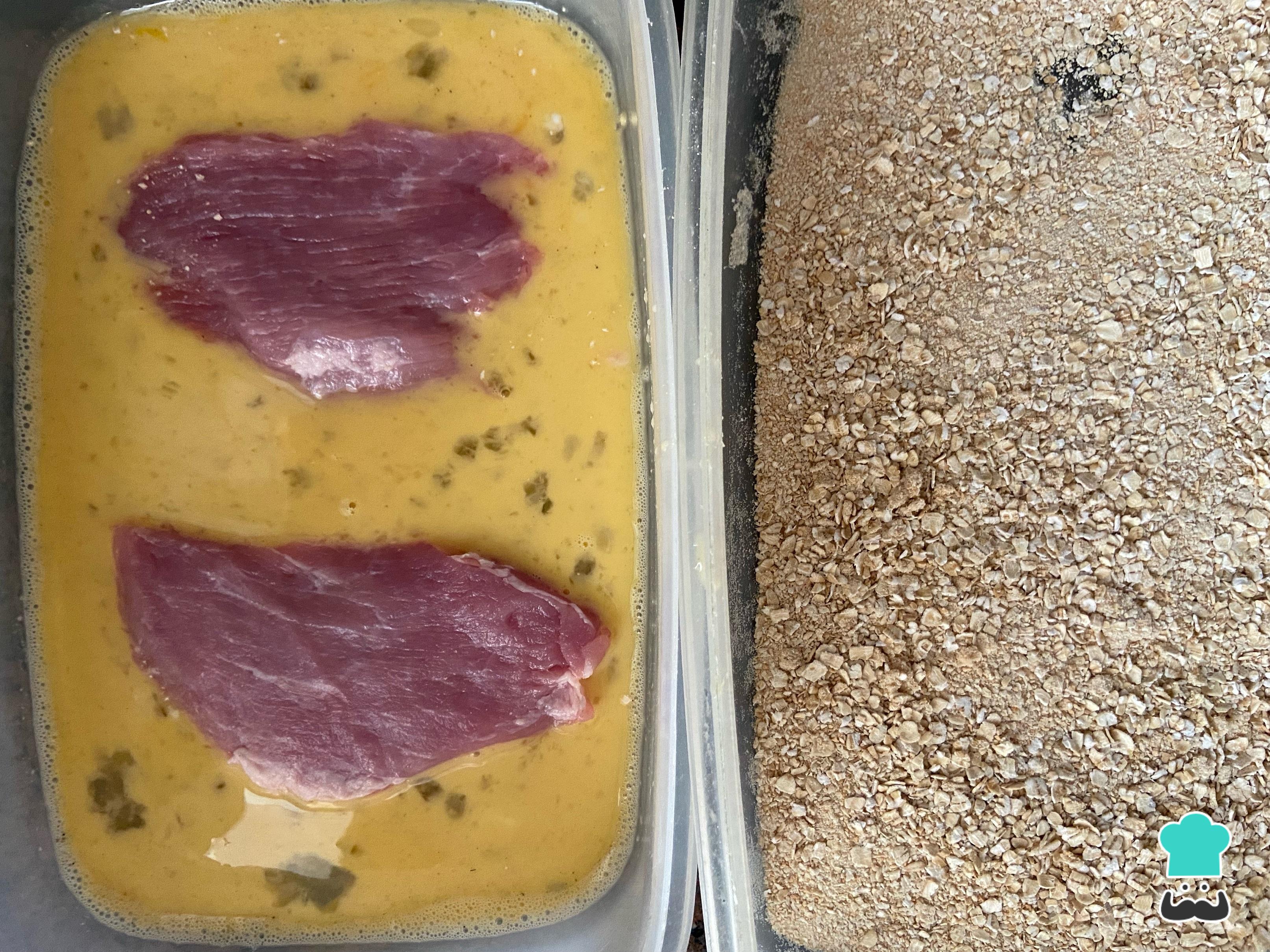 Truco: retira la grasa visible antes de humedecerla en el huevo.