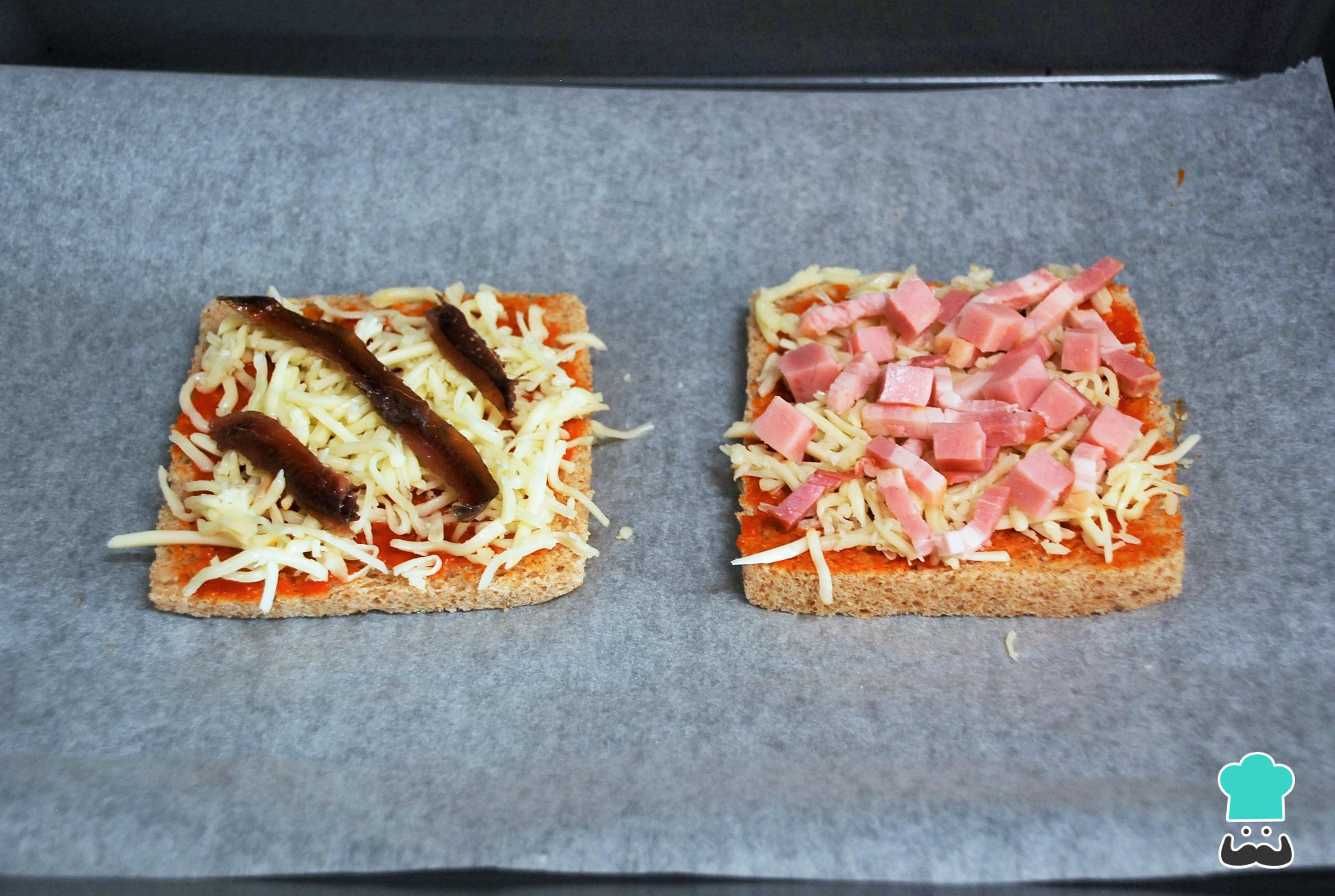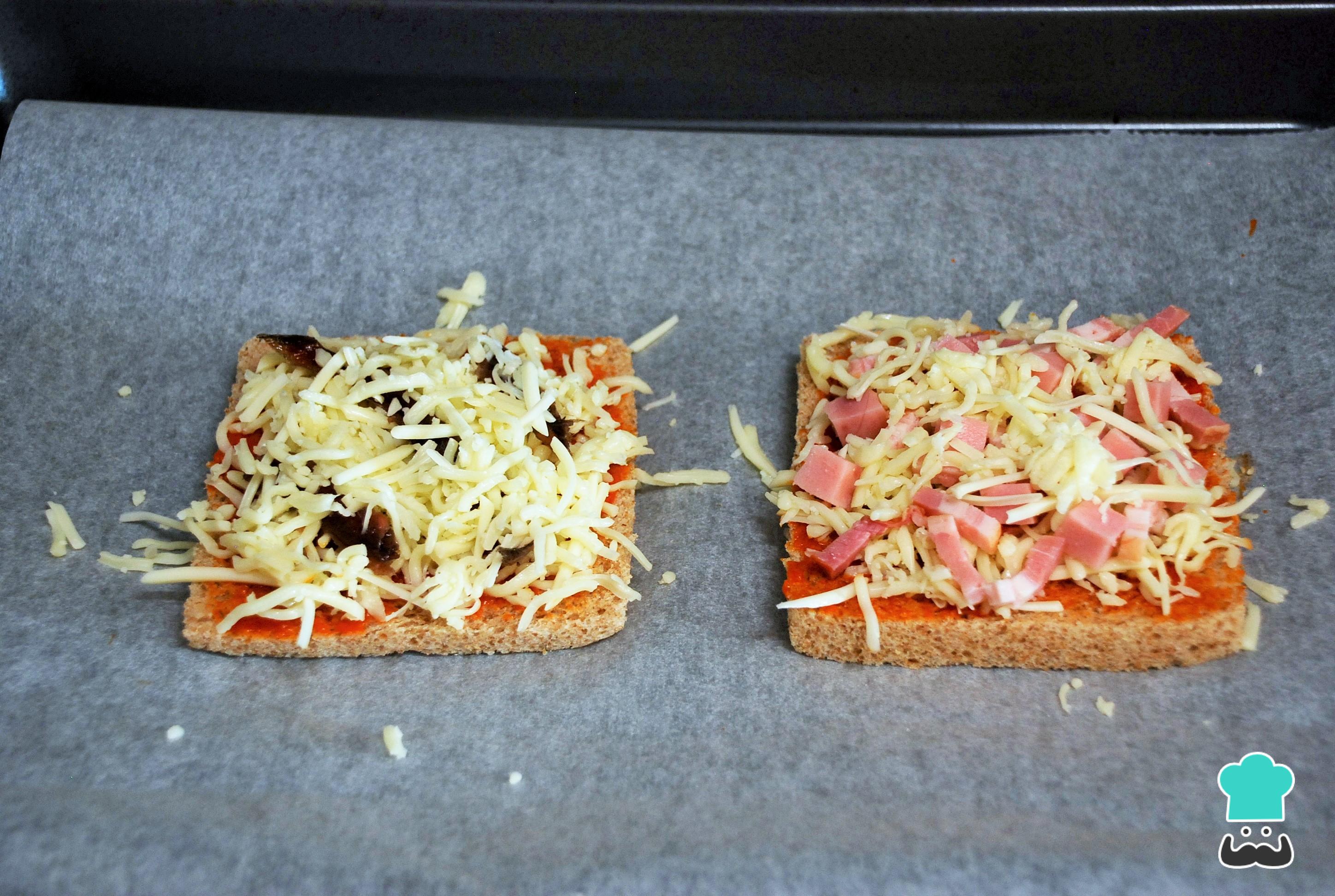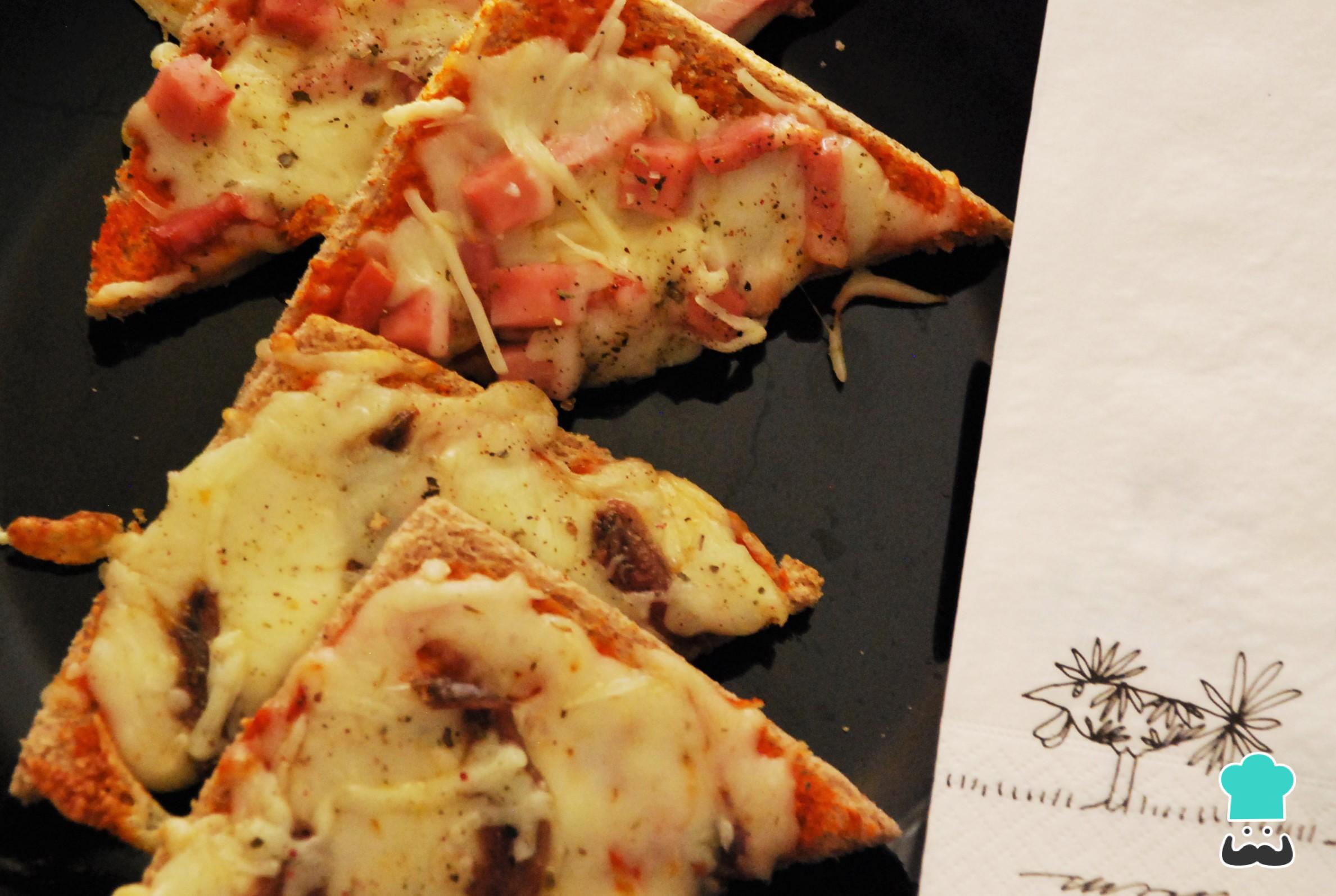 Esta receta es perfecta para resolver una comida o una cena rápida, ¡deliciosa, original y lista en 15 minutos! Las mini pizzas se pueden hacer con la masa clásica de pizza pero en este caso te enseñaremos cómo hacer mini pizzas con pan de molde y con los ingredientes que tienes en la nevera. Sigue el paso a paso y disfruta con esta receta fácil.
