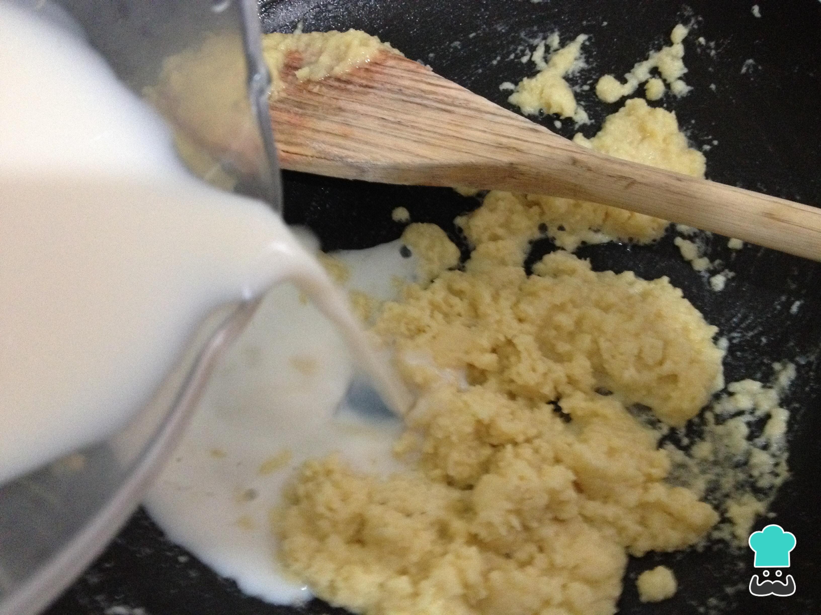 Añadir la leche de a poco y batir al mismo tiempo hasta obtener una mezcla cremosa y espesa.