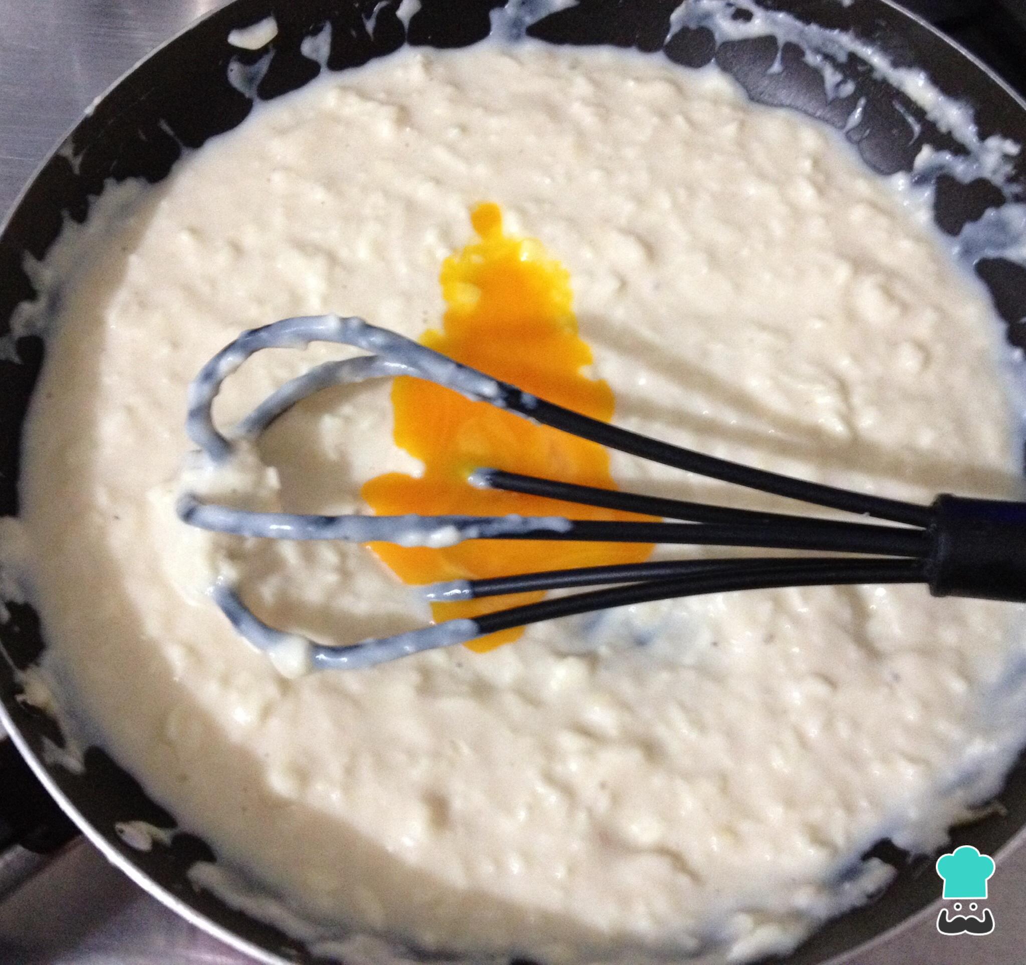 Cuando la mezcla este fría, añadir la yema de huevo y mezclar.