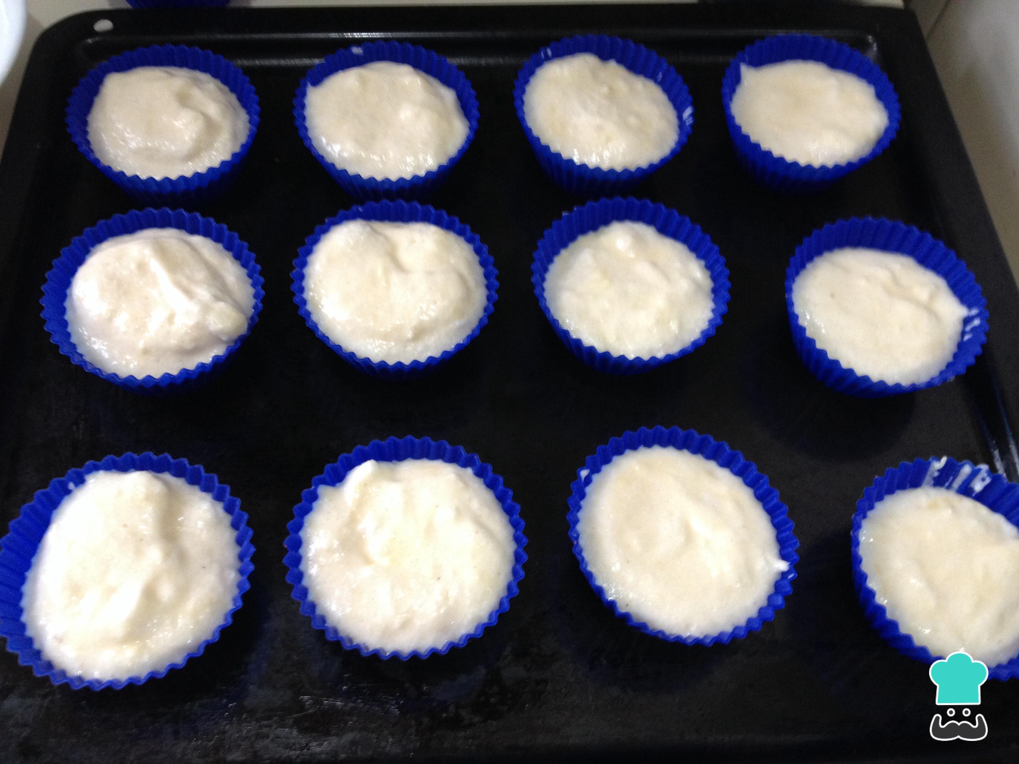 Agregar la mezcla en moldes y hornear a 180 grados C, durante 20 minutos.