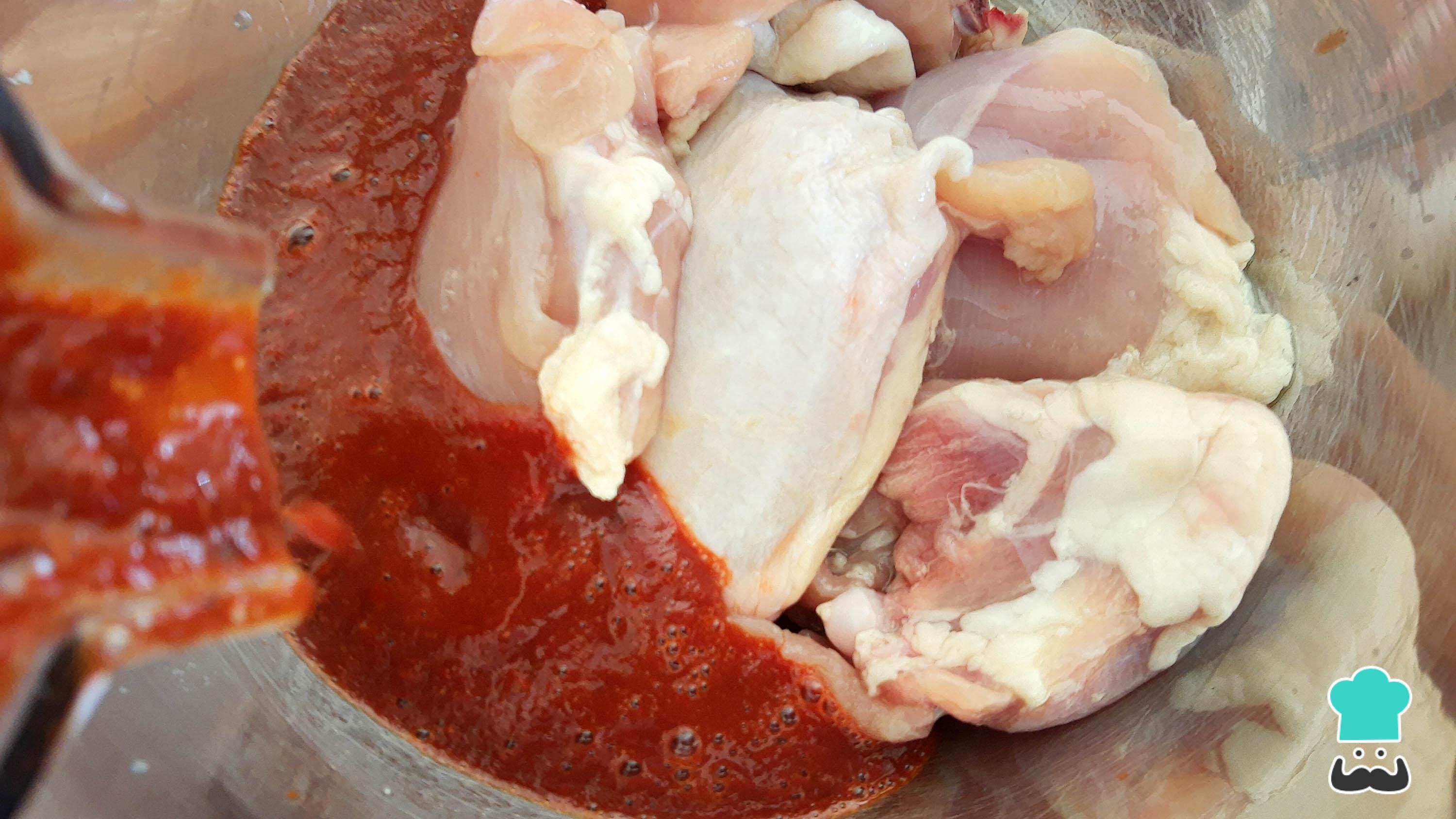 Marina las piezas de pollo con el adobo y deja que reposen durante al menos 1 hora. Puedes dejar el pollo marinar durante una noche para reforzar el sabor con el adobo.