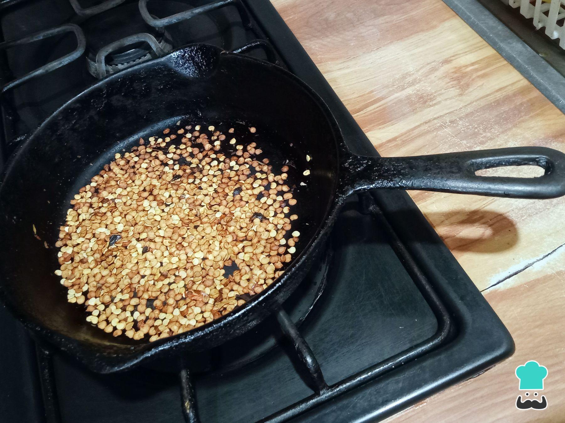 Tuesta las semillas de los chiles en una sartén caliente a fuego medio, moviendo constantemente, al menos de 5 a 10 minutos.