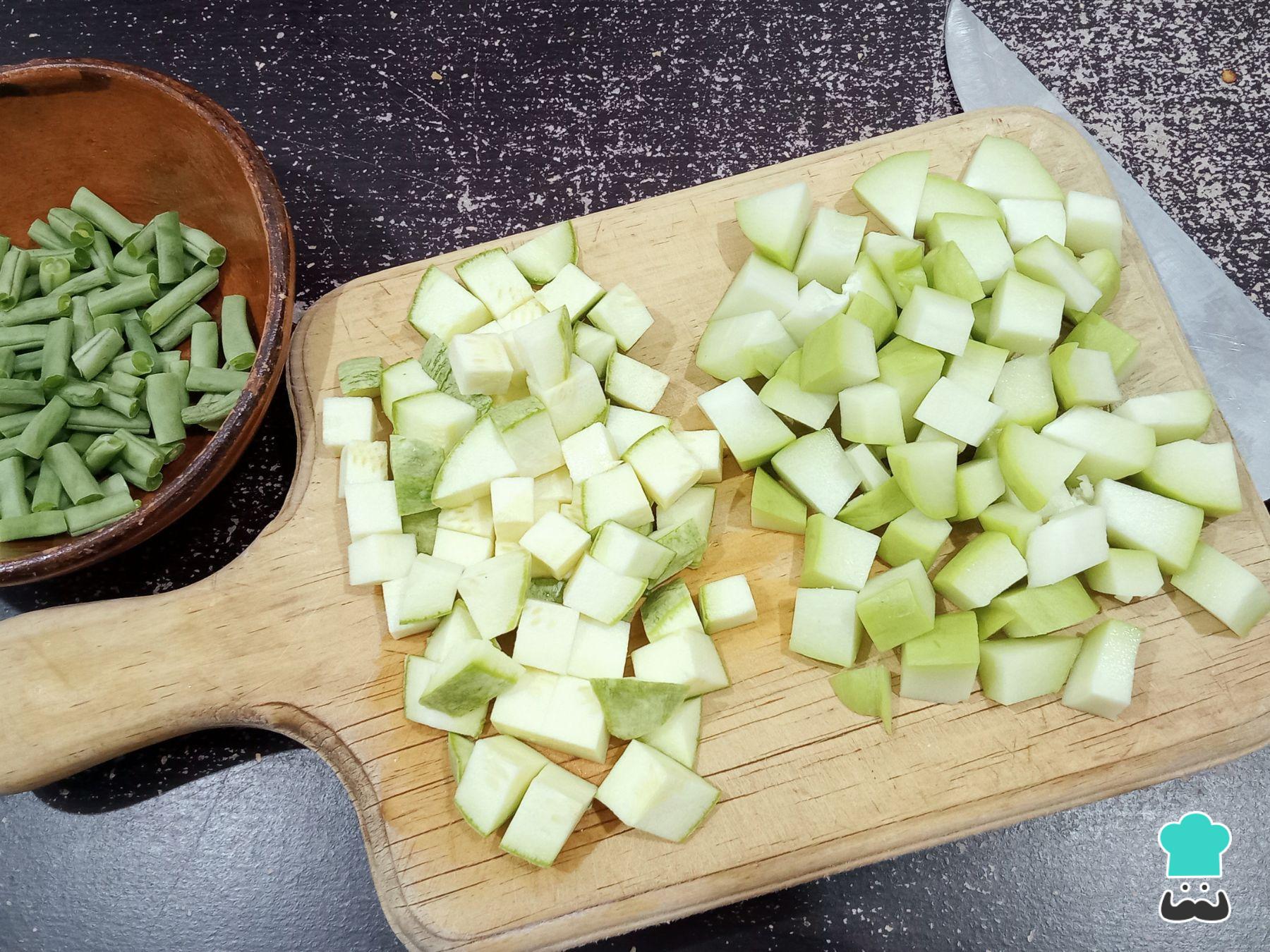 Para acompañar el mole: corta los ejotes, calabacita y chayote en trozos medianos. Cuece los vegetales en un poco de caldo, sazona con sal y pimienta al gusto y reserva hasta el momento de servir.