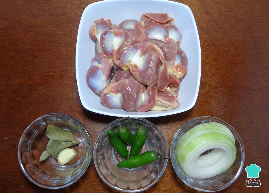 Para poder empezar a preparar las mollejas de pollo encebolladas, primero debemos dejar listos todos los ingredientes y asegurarnos de que no nos falta nada.