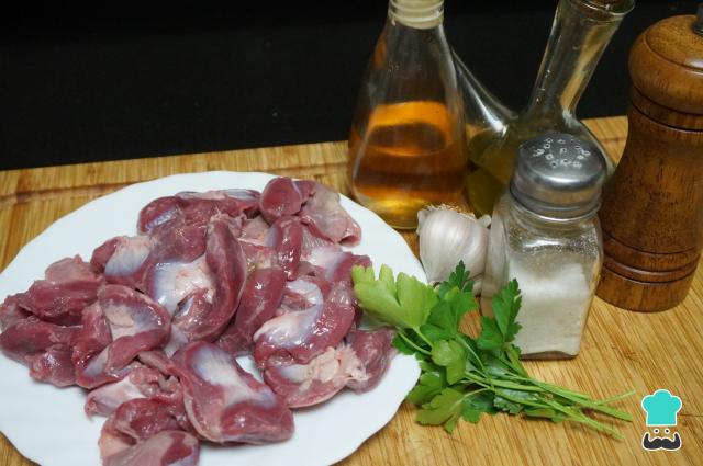 Prepara todos los ingredientes para hacer las mollejas de pollo fritas. Aunque las venden limpias, recuerda siempre terminar de lavarlas en casa.