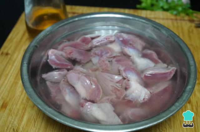 Al preparar esta receta, la parte que lleva más tiempo es la de lavar las mollejas. Una vez estén limpias y remojadas en vinagre, puedes prepararlas como quieras. Esto se hace para librarse de cualquier resto del animal y dejarlas más claras y limpias.