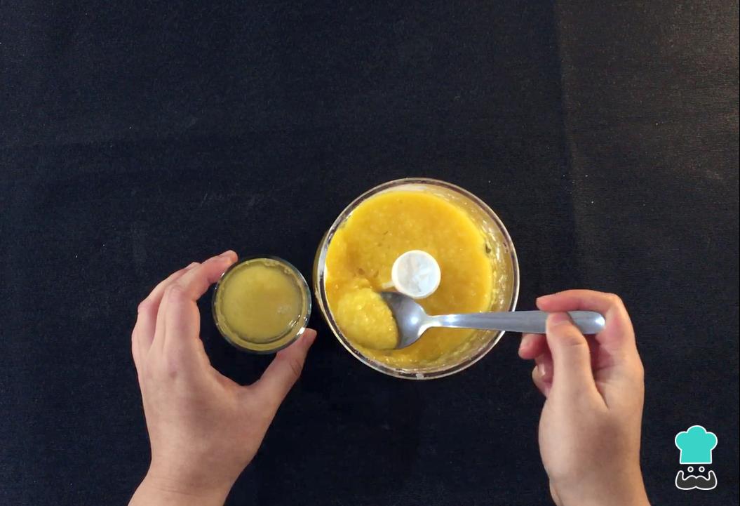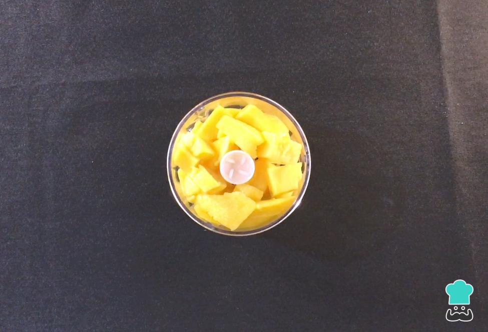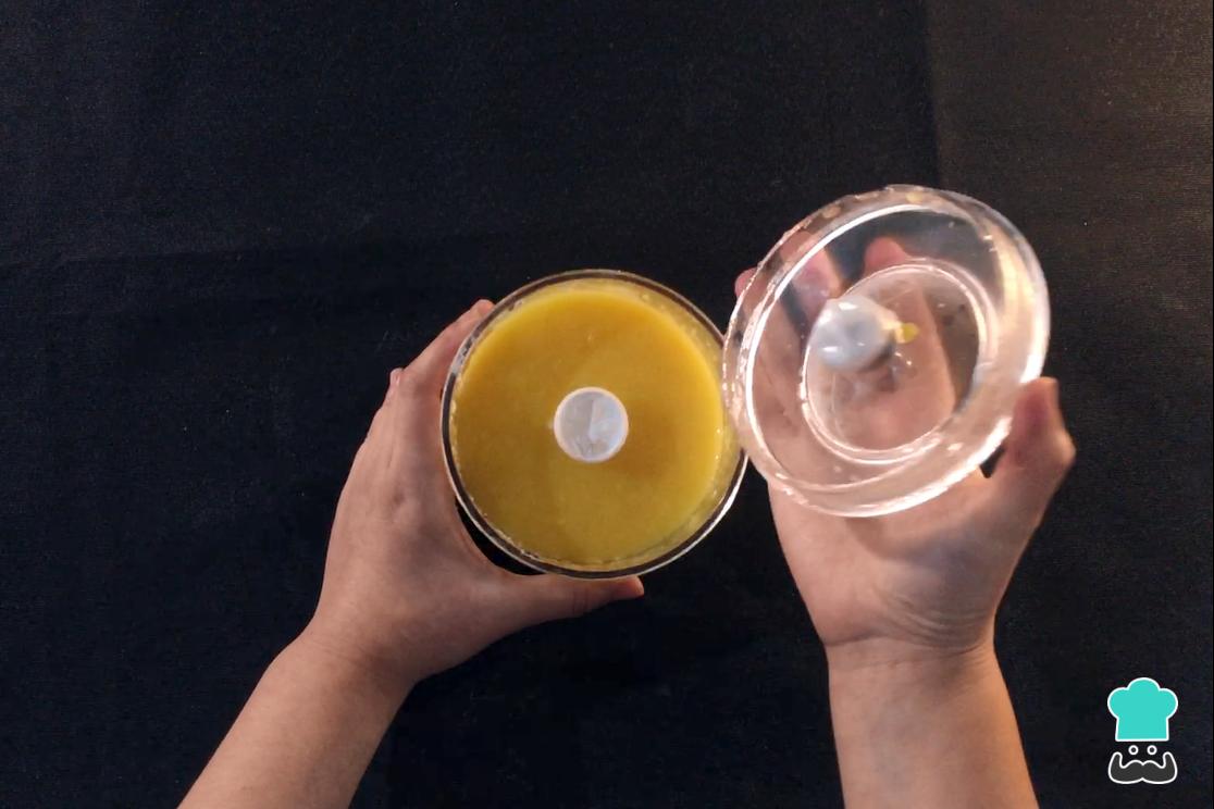 - Si no quieres que la mousse te quede con grumos de la fruta, tamiza la mezcla una vez hayas triturado el mango y el azúcar glass. Continúa con la receta como siempre.