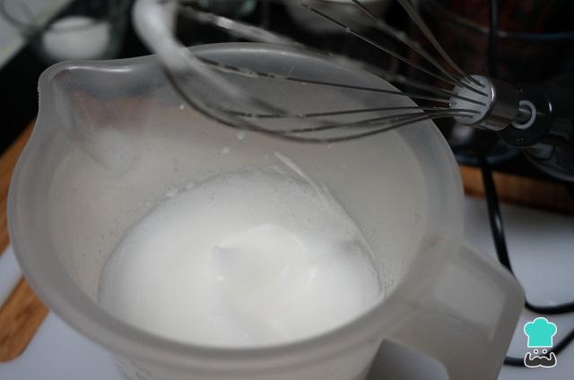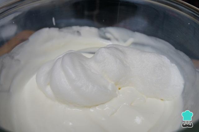 En otro bol, montamos las claras a punto de nieve bien firmes y reservamos en la nevera. Por otro lado, montamos la nata.