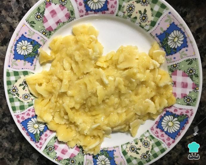 Aplasta y machaca el plátano con un tenedor hasta hacerlo puré.