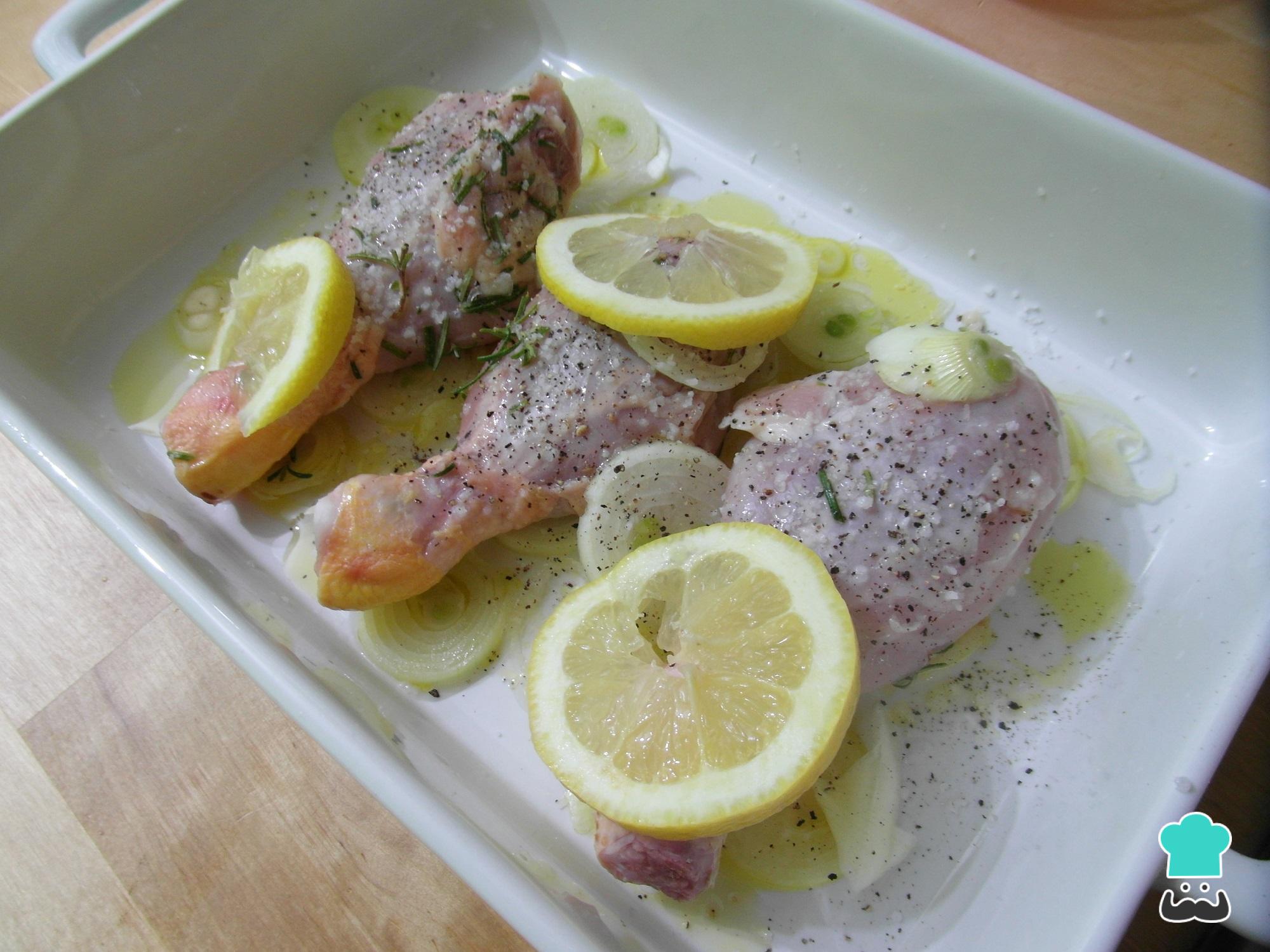 Cómo hacer Muslos de pollo al horno con limón y vino blanco: