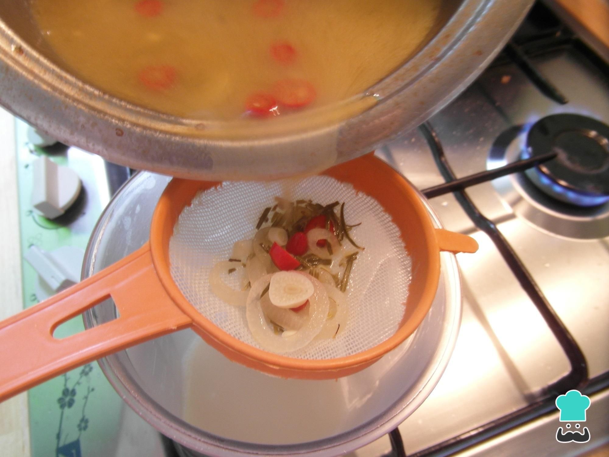 Truco: Si quieres reducir el picante de la salsa, retira los chiles antes de poner los jugos en el cazo.