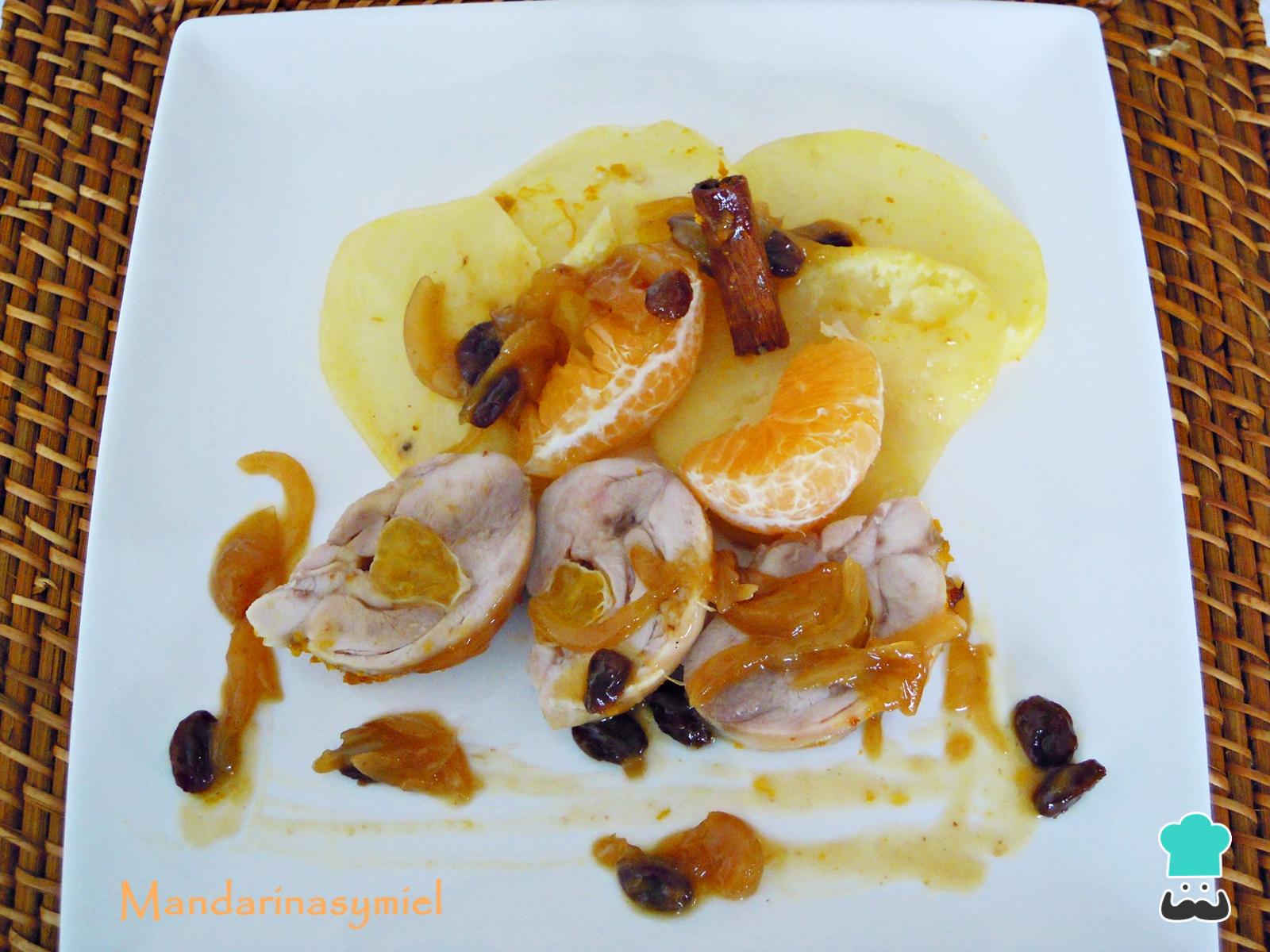 Receta de Muslos de pollo rellenos con salsa de mandarina