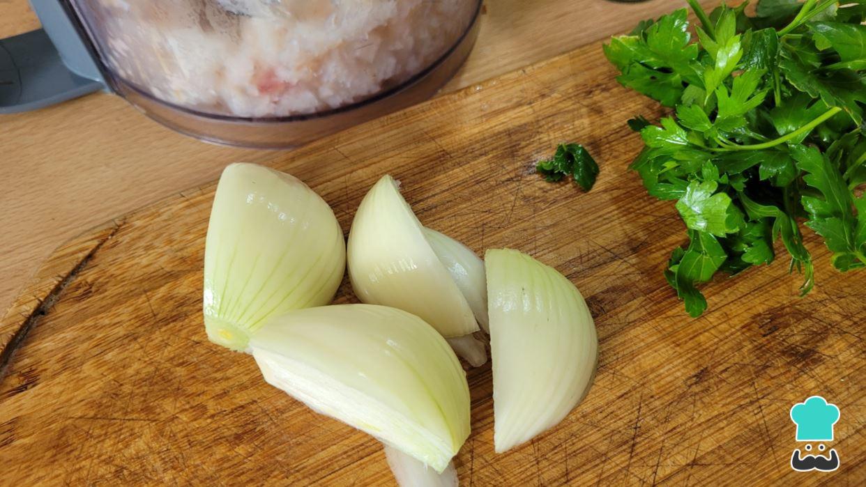 Pela y corta la cebolla en trozos más pequeños solo para que sea más fácil de licuar.