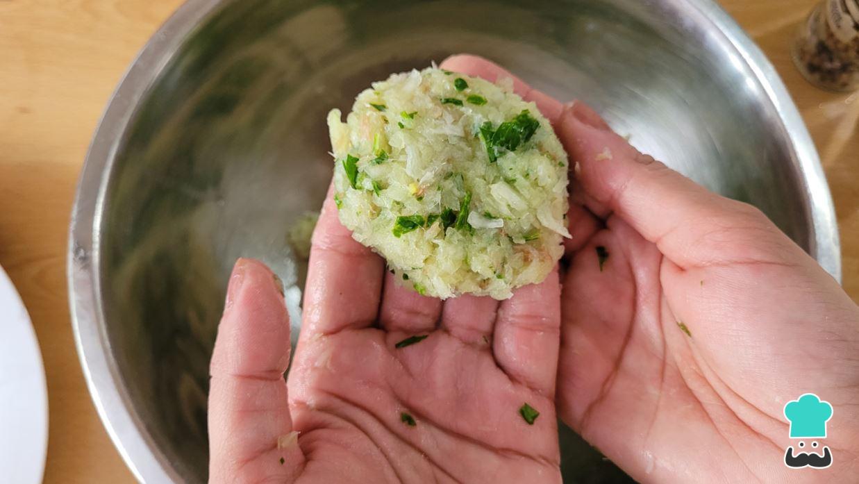 Se debe llegar a una consistencia de plastilina con un aglutinante que sea posible modelar. Si notas que te queda mucha agua, exprime un poco.