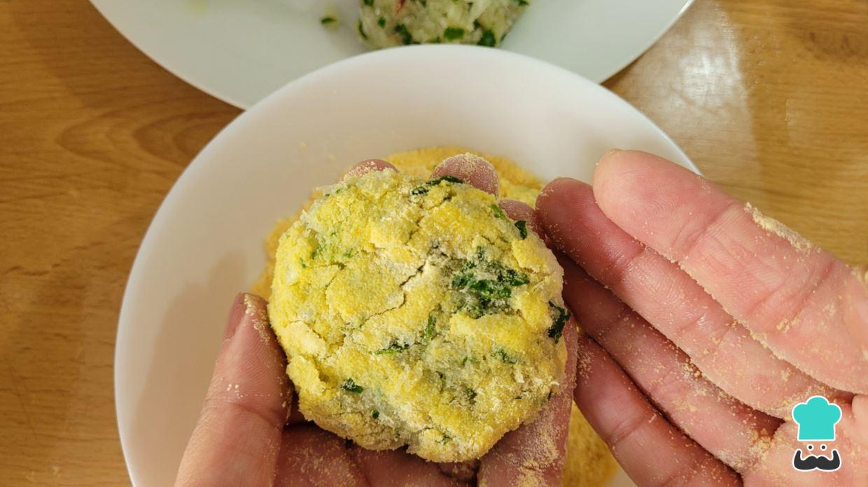 Truco: no es necesario agregar huevo, porque la humedad de los ingredientes ayudará a que la harina de maíz se pegue.