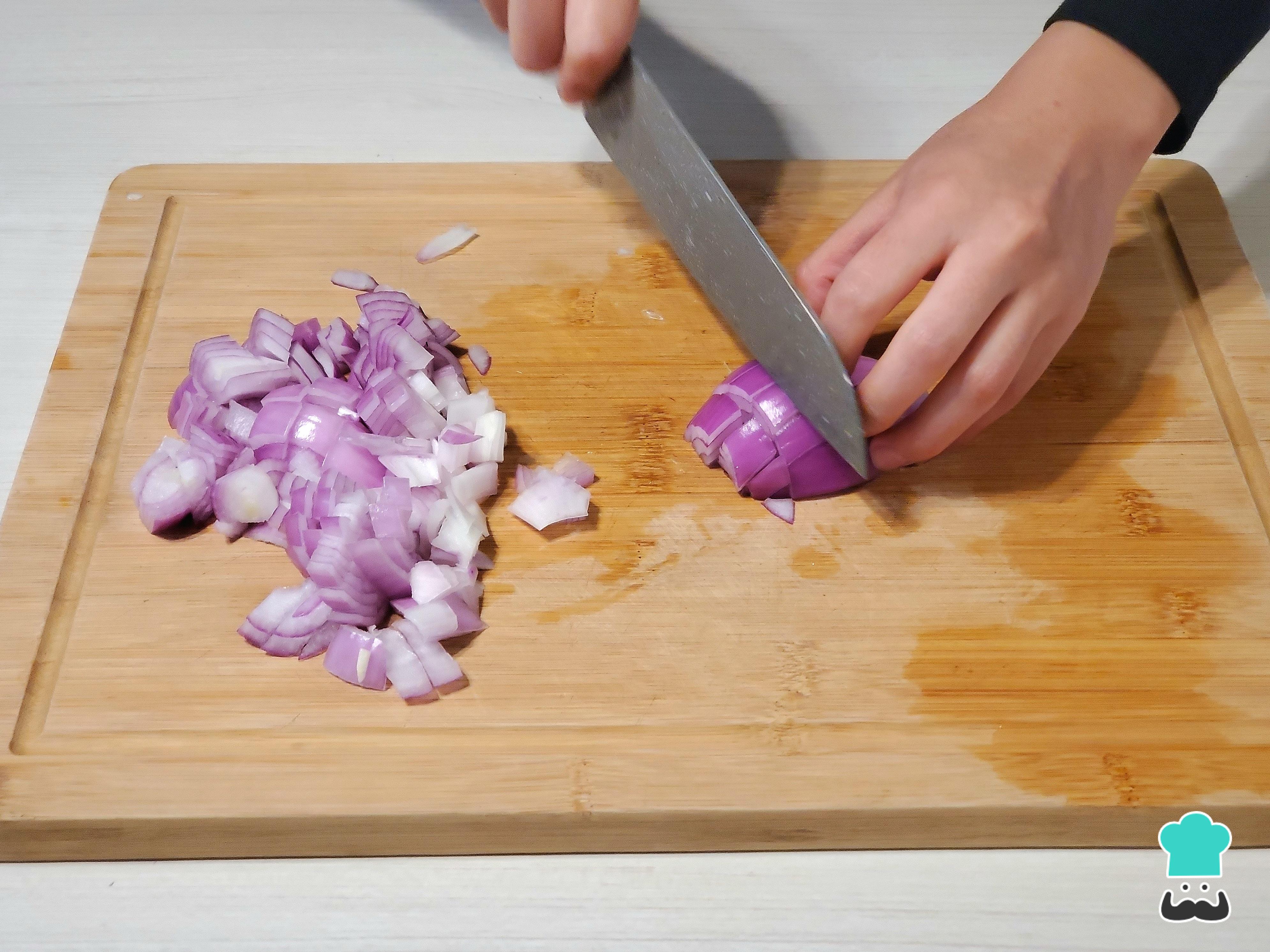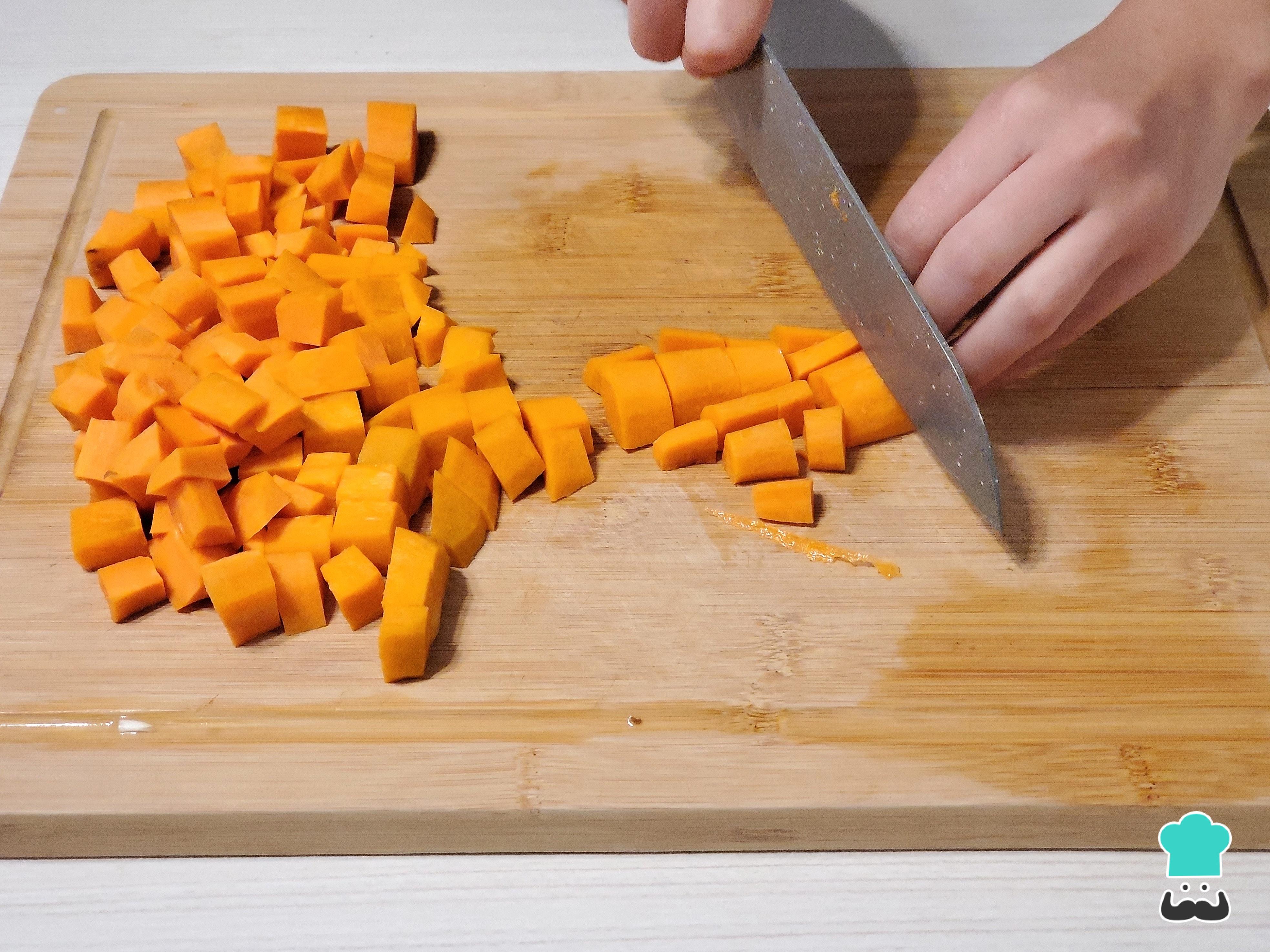 Truco: no hace falta que los cortes sean perfectos, ya que posteriormente se triturarán.