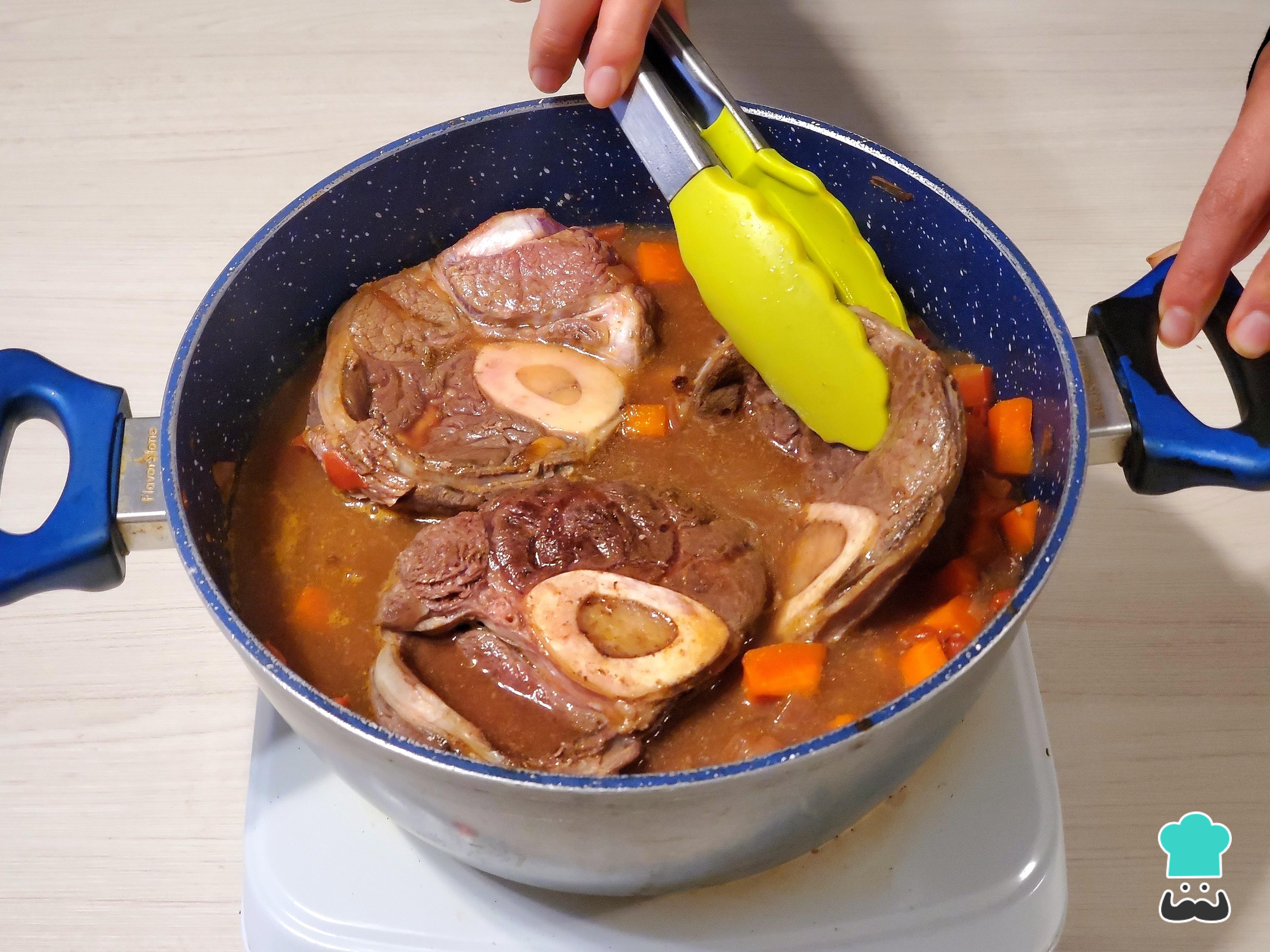 - Para reducir el tiempo de cocción, puedes cocinar este osobuco en una olla a presión. El tiempo de cocción será alrededor de 45 minutos.