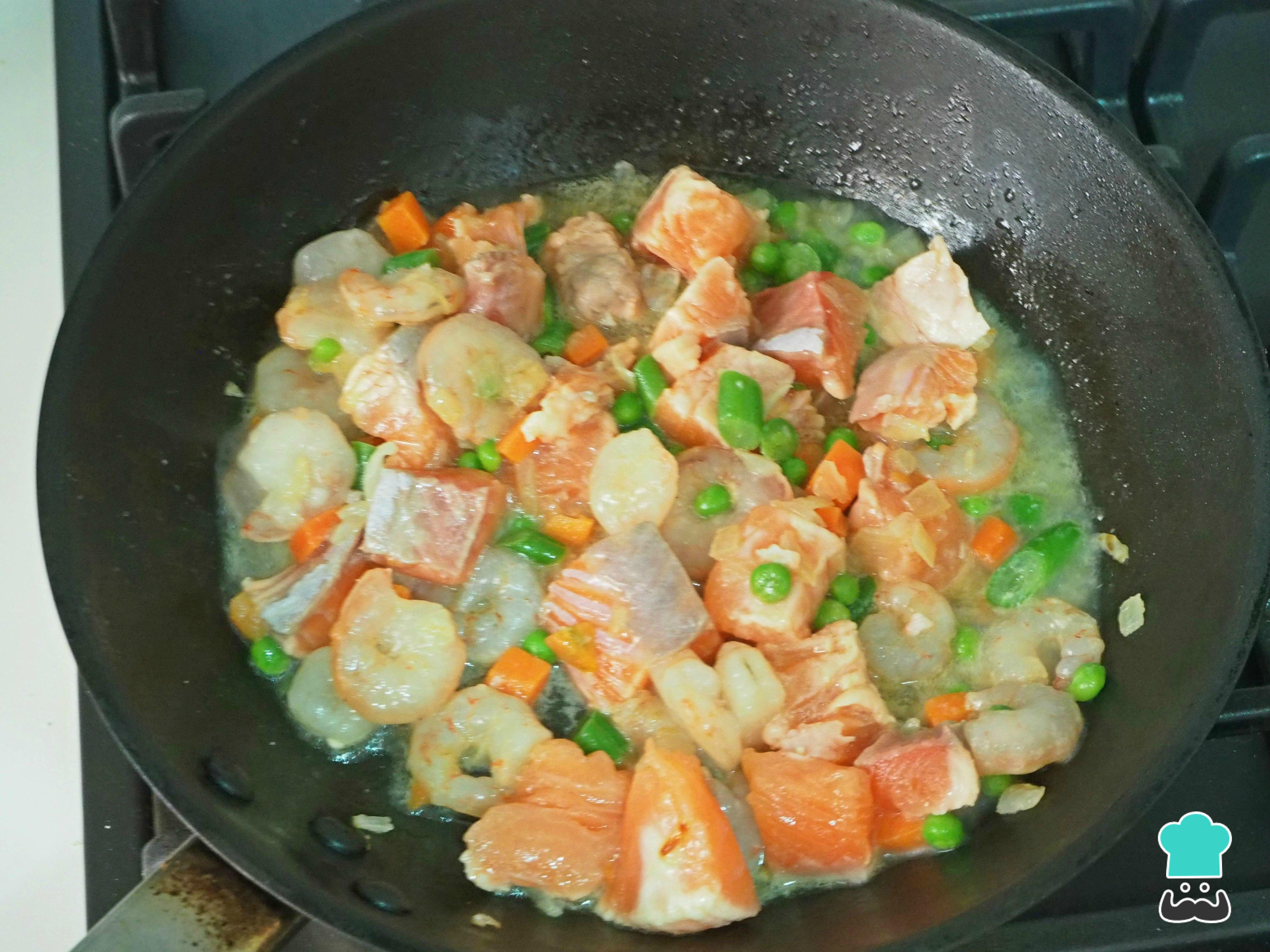 Cómo hacer Paella de verduras y salmón: