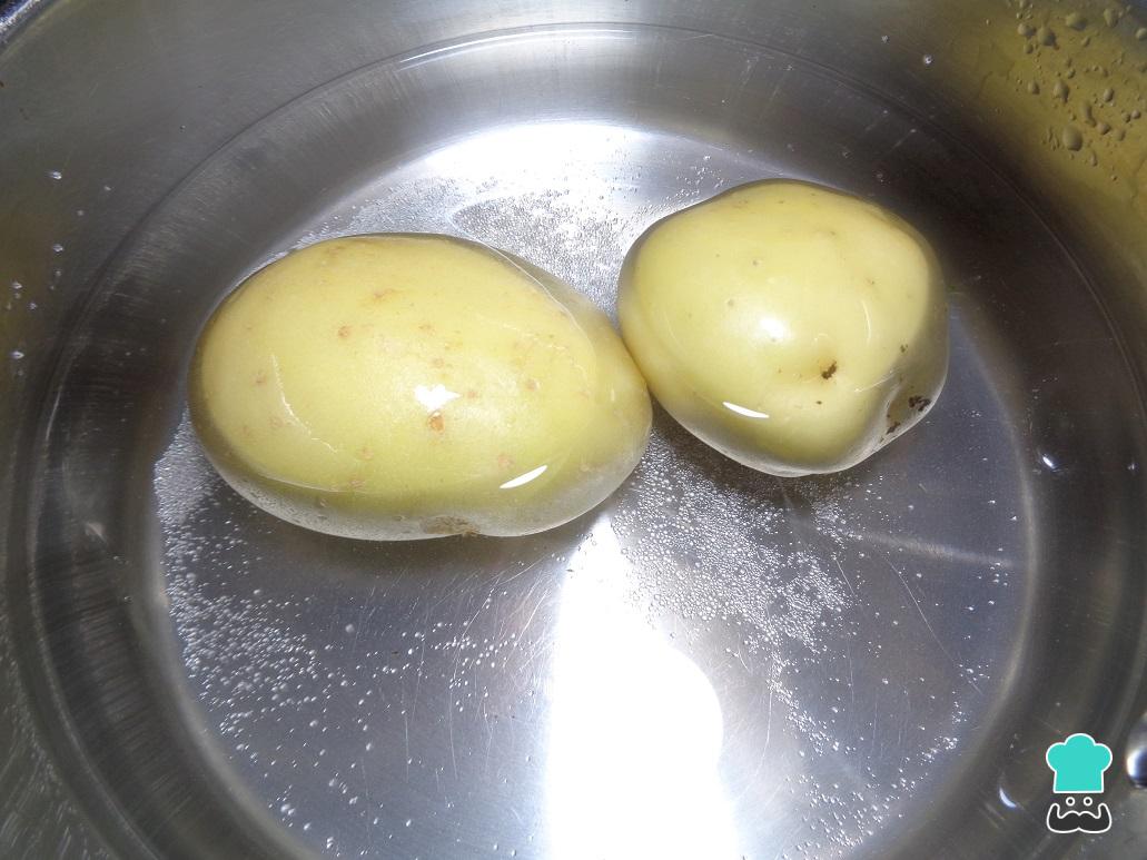 Por un lado vamos a comenzar poniendo a cocinar en suficiente agua hirviendo las papas, dejando que se cocinen hasta que estén muy suaves.